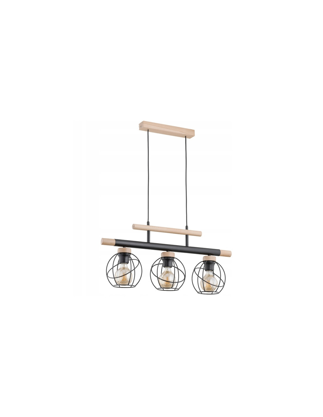 Wykonana z wysokiej jakości materiałów, lampa łączy w sobie metal w kolorze czarnym oraz jasne drewno, co tworzy harmonijną kompozycję. Trzy druciane klosze wygląda elegancko, a ich industrialny charakter sprawia, że idealnie pasują do nowoczesnych aranżacji. Dodatkowo istnieje możliwość regulacji wysokości lampy, co ułatwia dopasowanie jej do przestrzeni.