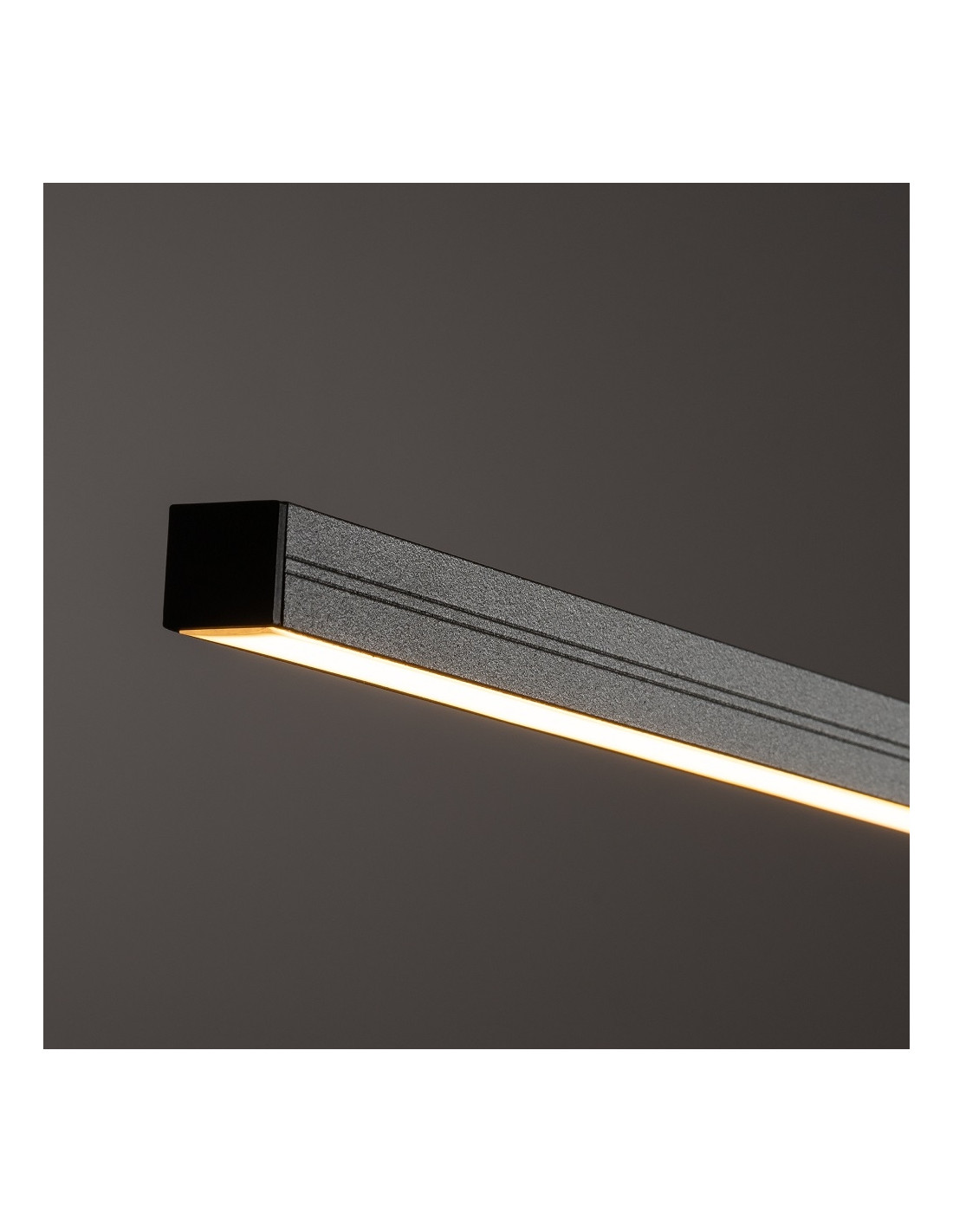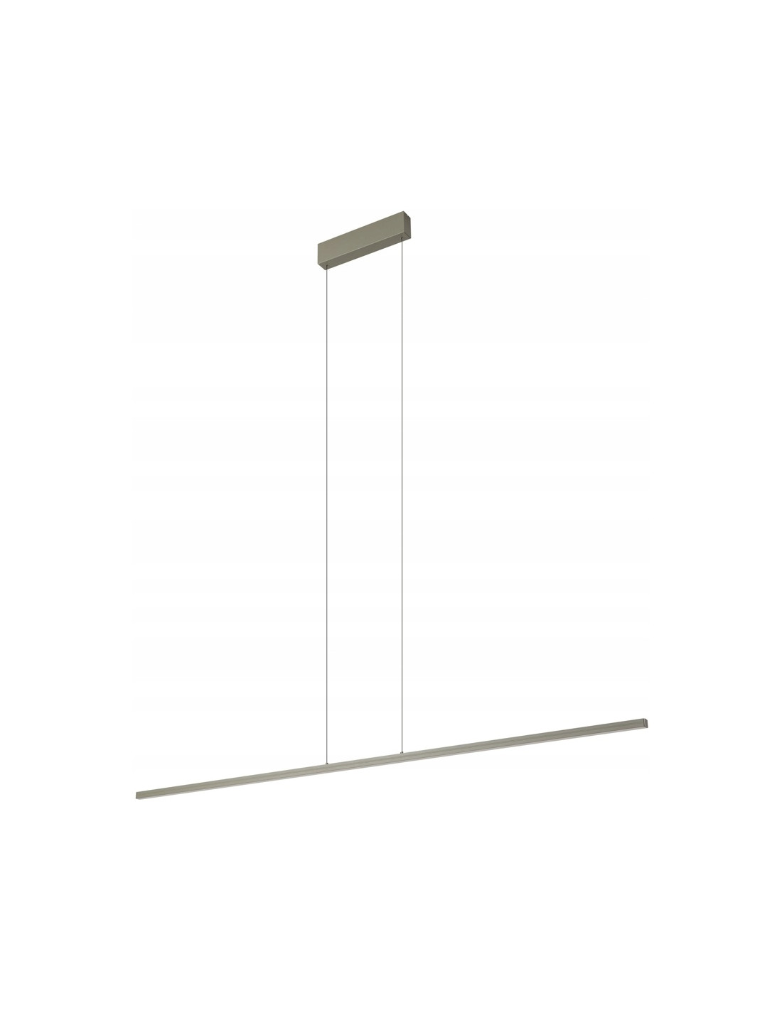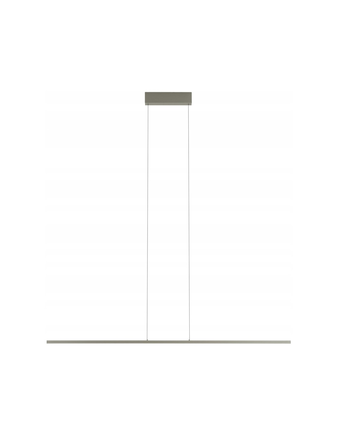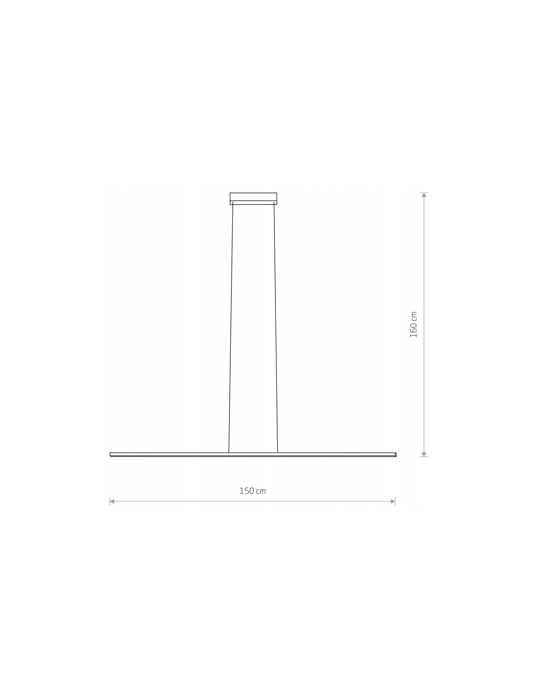 Wymiary oprawy są dopasowane do większych powierzchni: szerokość 150 cm oraz regulowana wysokość do max 160 cm (możliwa modyfikacja przez elektryka z uprawnieniami SEP). Smukła konstrukcja klosza o głębokości 2 cm sprawia, że lampa prezentuje się lekko i harmonijnie nad stołem lub wyspą kuchenną.