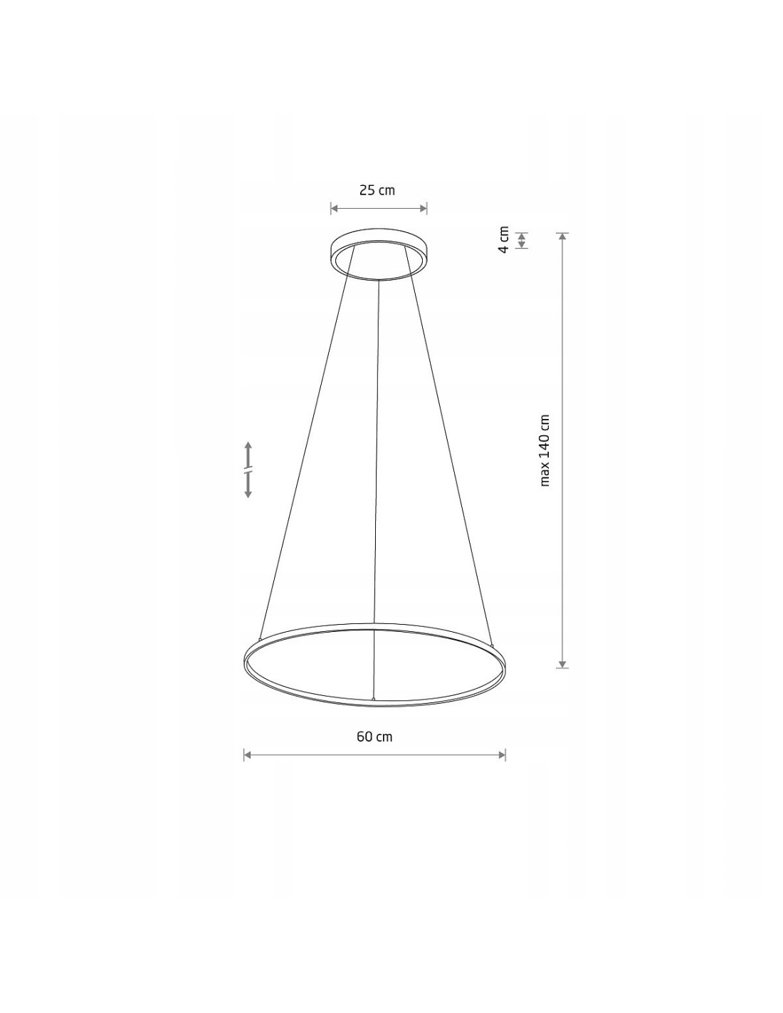 : Produkt wykonany jest głównie z aluminium and tworzywa sztucznego, co gwarantuje lekkość i trwałość. Szerokość/średnica oprawy wynosi 60 cm, a regulowana wysokość całkowita do 140 cm pozwala dopasować zawieszenie do wysokości pomieszczenia i preferowanego efektu świetlnego. Stopień ochrony IP20 predestynuje lampę do użytku wewnętrznego.