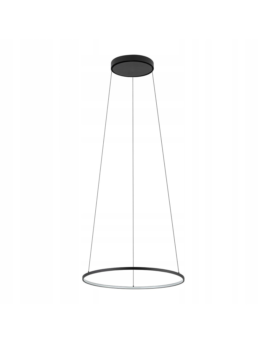 Lampa została wykonana z trwałych materiałów: korpus z aluminium w kolorze czarnym z elementami w białym wykończeniu. Średnica pierścienia to 45 cm, a maksymalna regulowana wysokość wynosi 140 cm, co pozwala dostosować oprawę do różnej wysokości pomieszczeń i preferowanego efektu świetlnego. Stopień ochrony IP20 wskazuje na przeznaczenie do wnętrz.