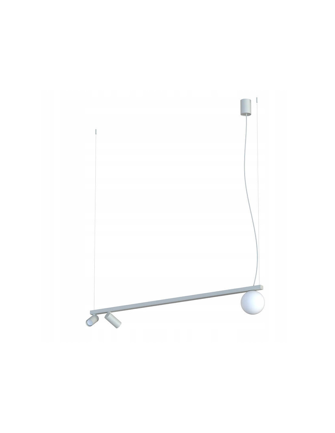 Lampa ma długość całkowitą 160 cm i średnicę pojedynczego klosza 107 mm, dzięki czemu doskonale sprawdzi się nad stołem w kuchni, wyspą kuchenną, w jadalni czy w strefie wypoczynkowej. Kompozycja trzech szklanych tub tworzy harmonijną aranżację świetlną, która jednocześnie pełni funkcję dekoracyjną i użytkową.