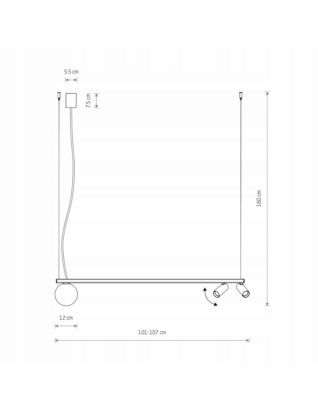 Projekt oprawy zakłada praktyczne rozwiązania montażowe: długość całkowita do 160 cm z możliwością modyfikacji wysokości przez elektryka z uprawnieniami SEP. Wymiary kloszy oraz podsufitki są kompaktowe, co ułatwia instalację nad stołem lub wyspą kuchenną: szerokość całkowita 101–107 cm oraz wysokość abażura 8.5–12 cm. Klasa ochronności I oraz standardowe zasilanie ~220–230 V, 50/60 Hz gwarantują bezpieczne użytkowanie.