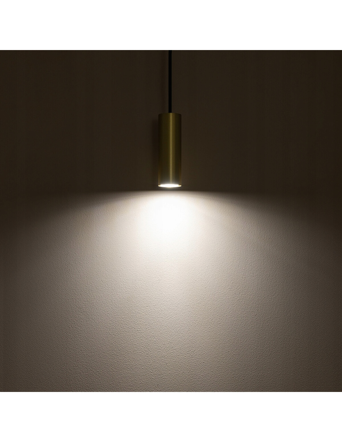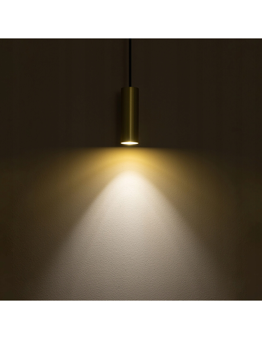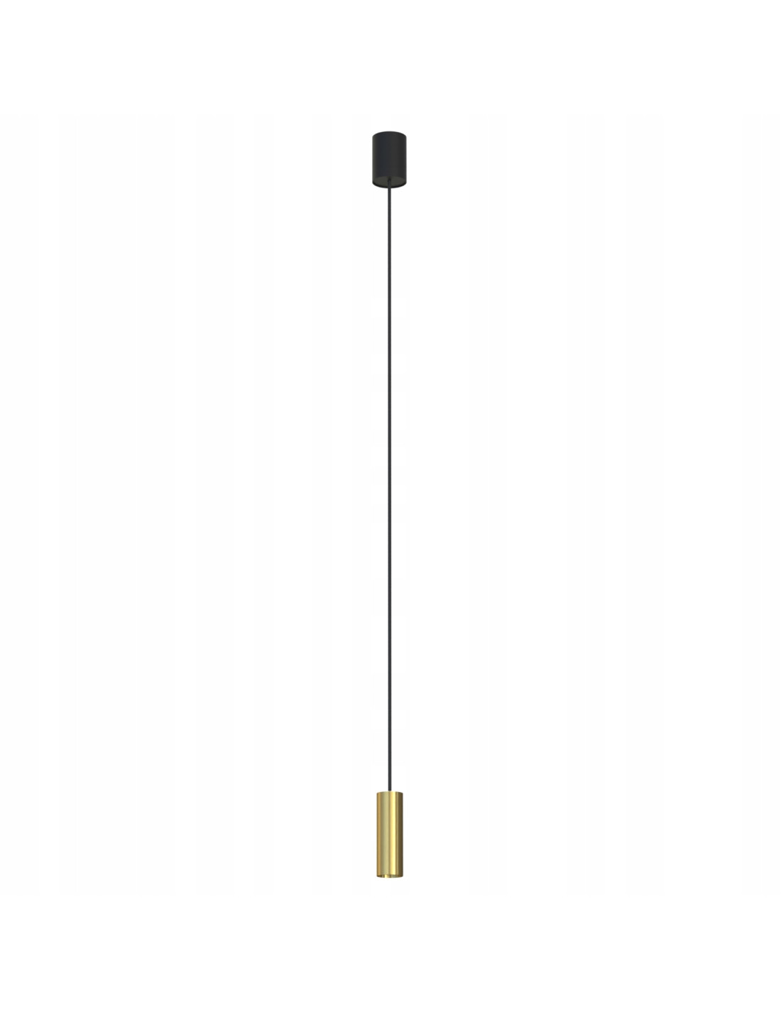 Projekt tej lampy oparto na minimalistycznej konstrukcji: pojedynczy klosz o kompaktowych wymiarach (wysokość klosza 12.3 cm, szerokość 4.0 cm) zawieszony na regulowanym przewodzie o maksymalnej długości 130 cm. Obudowa wykonana jest z wysokiej jakości lity mosiądz, uzupełniona elementami ze stali lakierowanej w kolorze czarnym (RAL 9005), co gwarantuje trwałość i estetykę na długie lata.