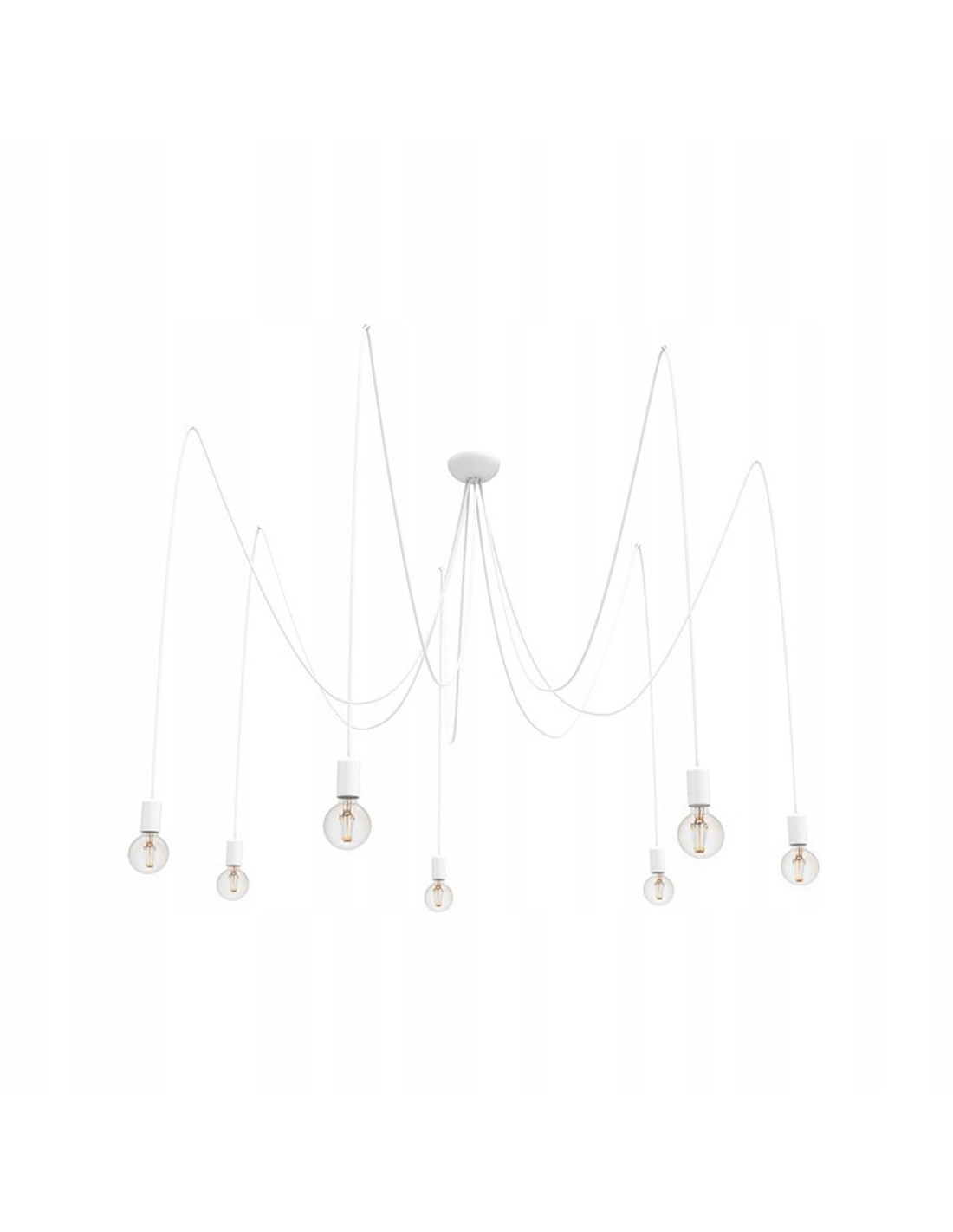 Nowodvorski SPIDER WHITE VII to 7-punktowa lampa wisząca w stylu loft/industrial, zaprojektowana z myślą o przestrzeniach, które wymagają efektownego, a jednocześnie funkcjonalnego oświetlenia. Obudowa i elementy widoczne utrzymane są w eleganckiej bieli, a przewody w dekoracyjnym oplocie podkreślają surowy charakter lampy, doskonale komponując się z belkami sufitowymi i przestrzeniami użytkowymi.