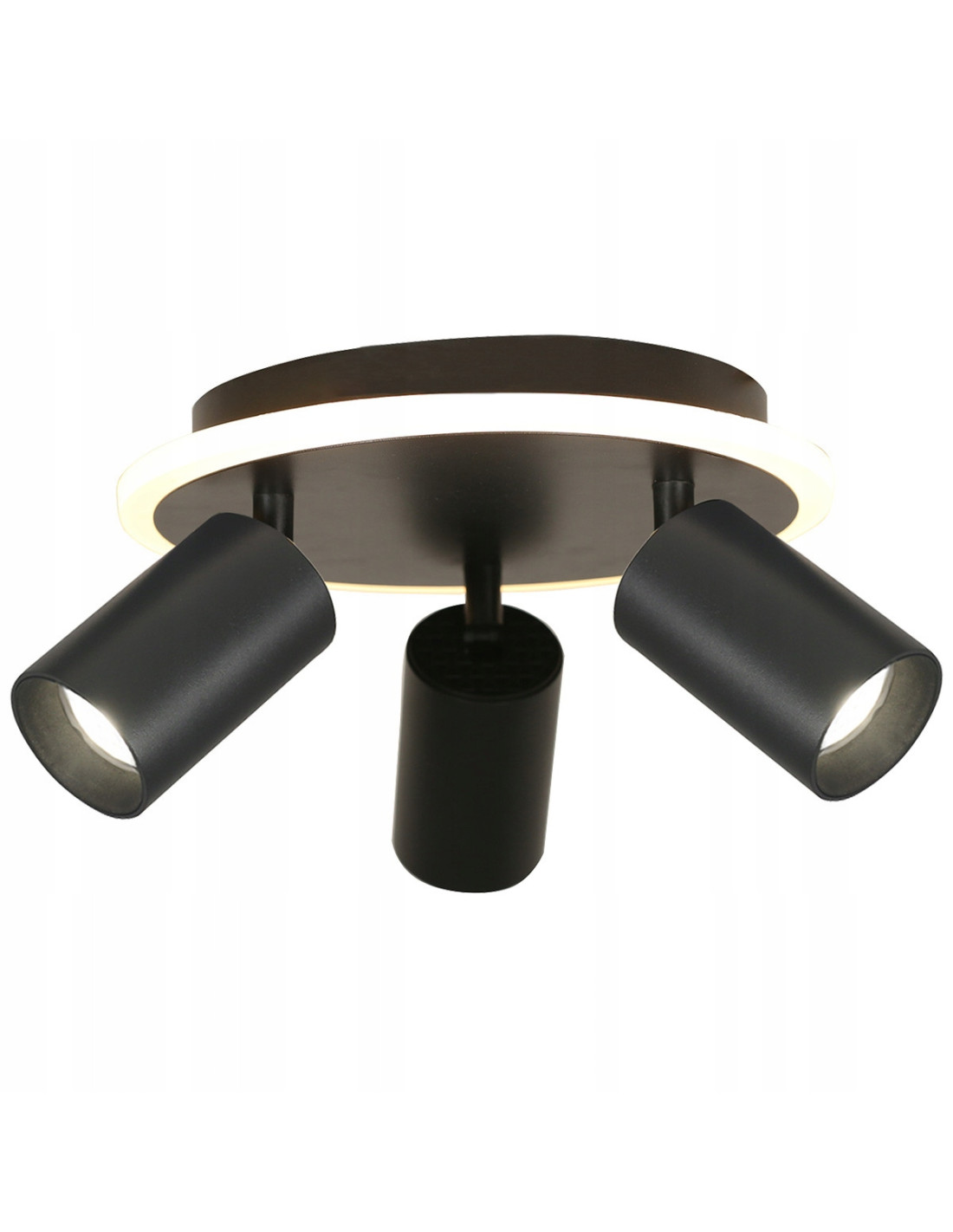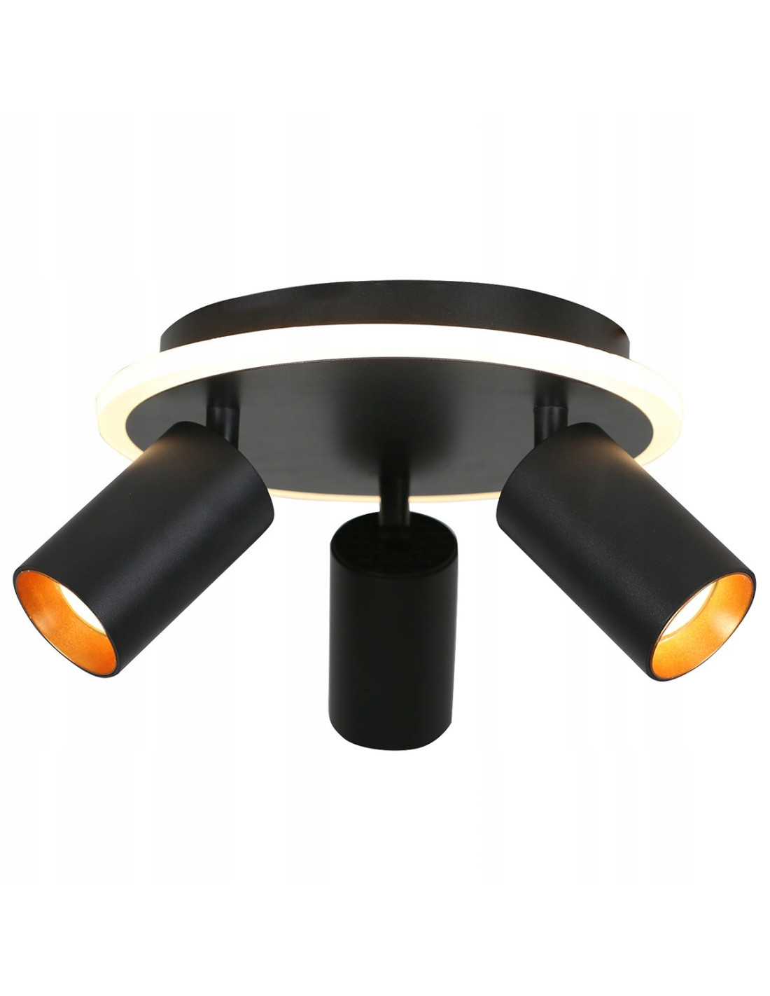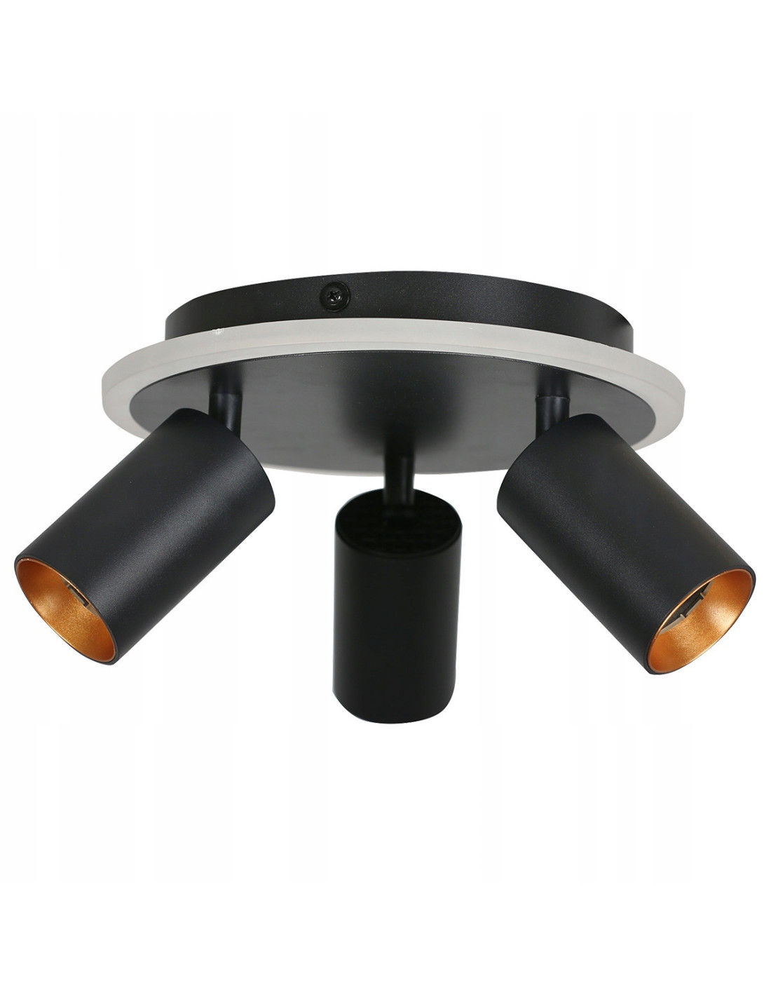 Wyposażony w trzy ruchome reflektorki, plafon umożliwia bezproblemową regulację kierunku padania światła. Dzięki możliwości wyboru spośród wymiennych obręczy w kolorze czarnym lub złotym, każdy z użytkowników może dostosować lampę do swojego stylu wnętrza. Obie wersje obręczy znajdują się w zestawie, co sprawia, że zakup staje się jeszcze bardziej praktyczny.