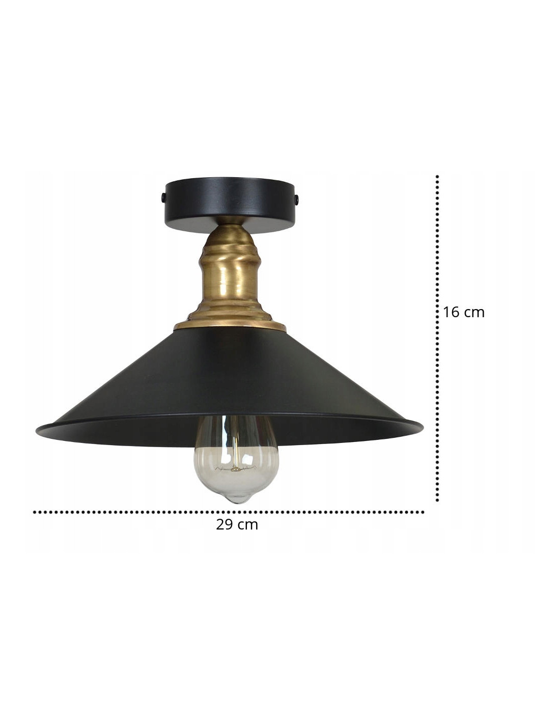 Produkt posiada mechanizm z gwintem E27, co zapewnia łatwość wymiany żarówki. Wysokość plafonu wynosi 16 cm, a jego szerokość to 29 cm, co czyni go odpowiednim do różnorodnych przestrzeni takich jak: biuro, salon, sypialnia oraz korytarz.