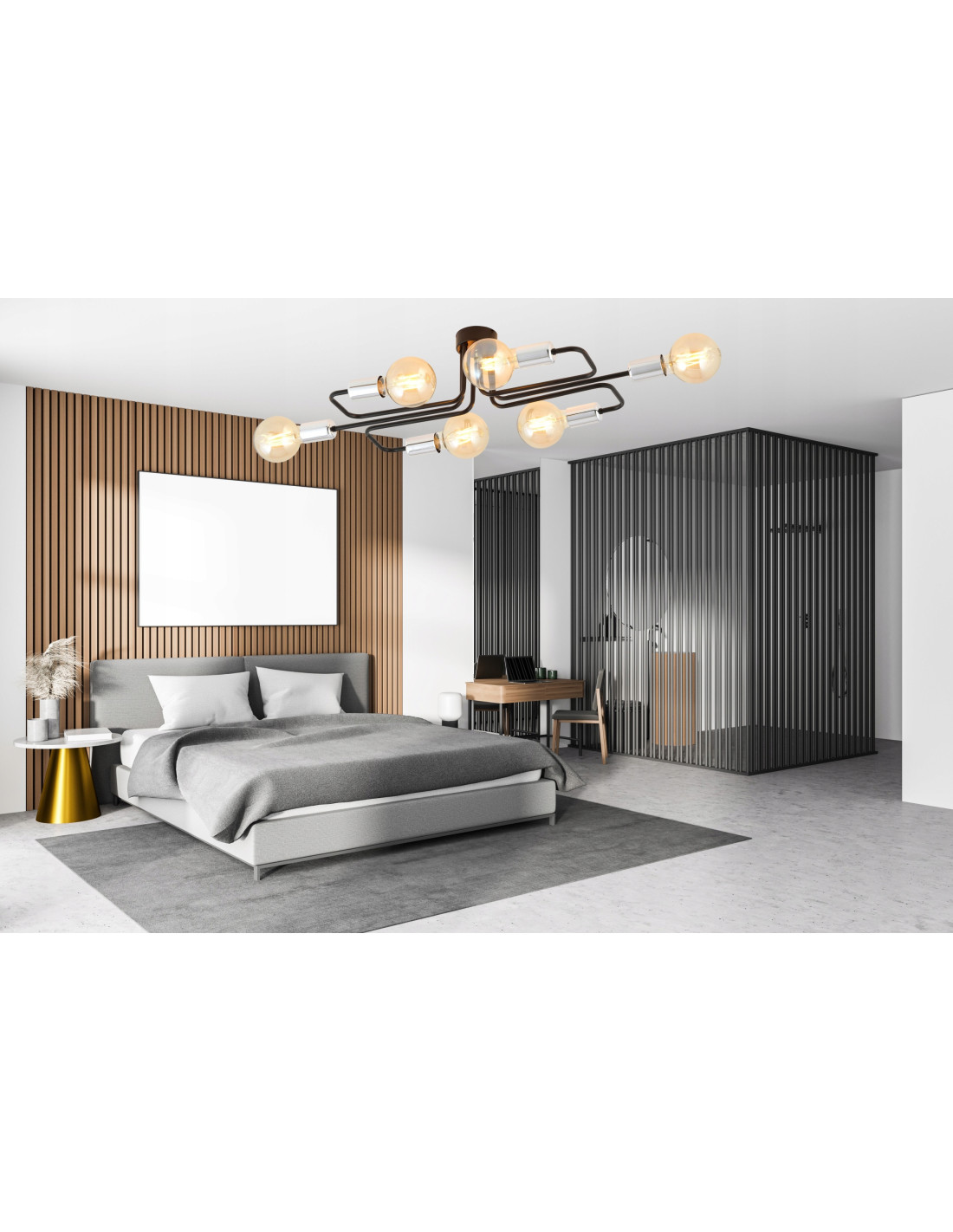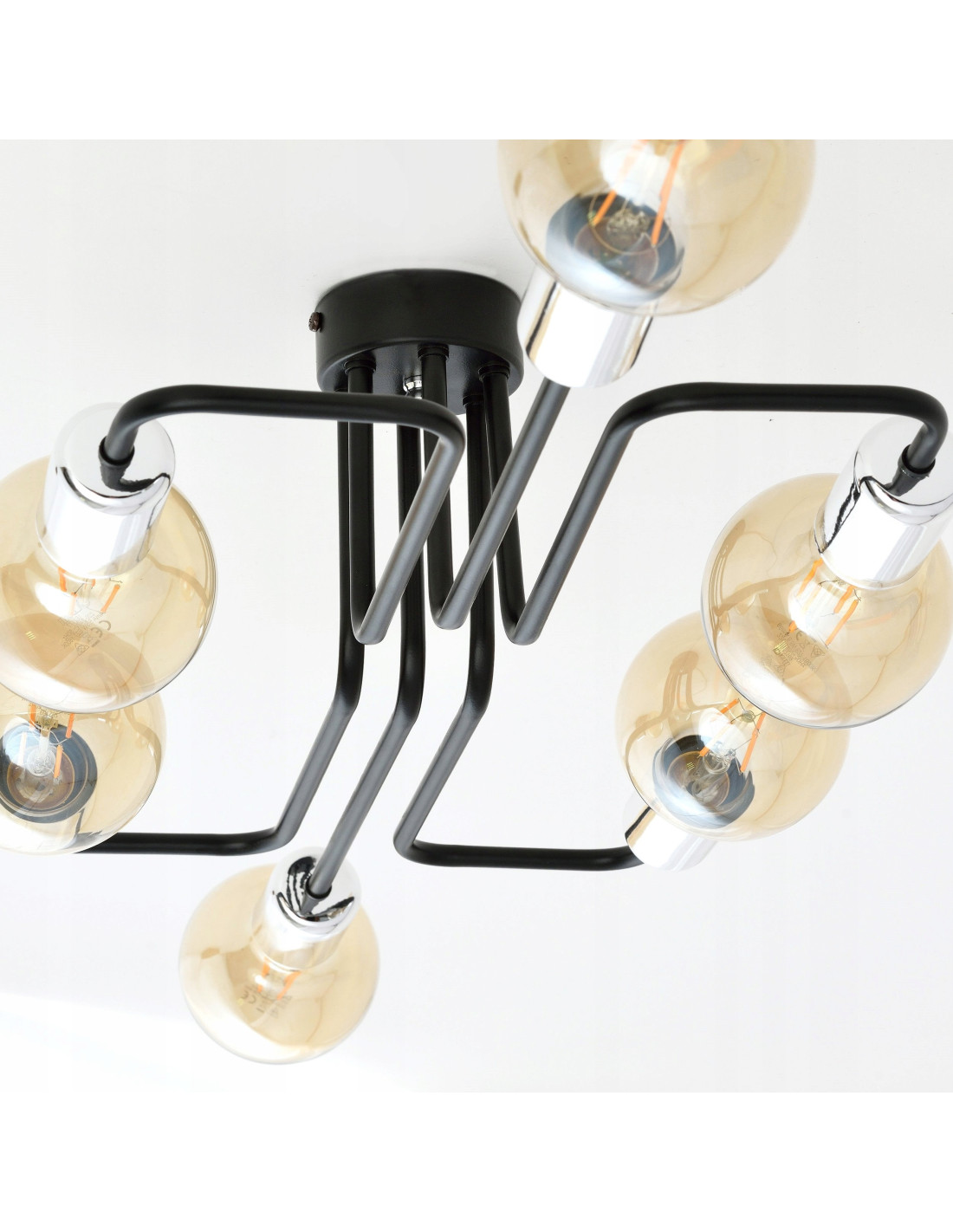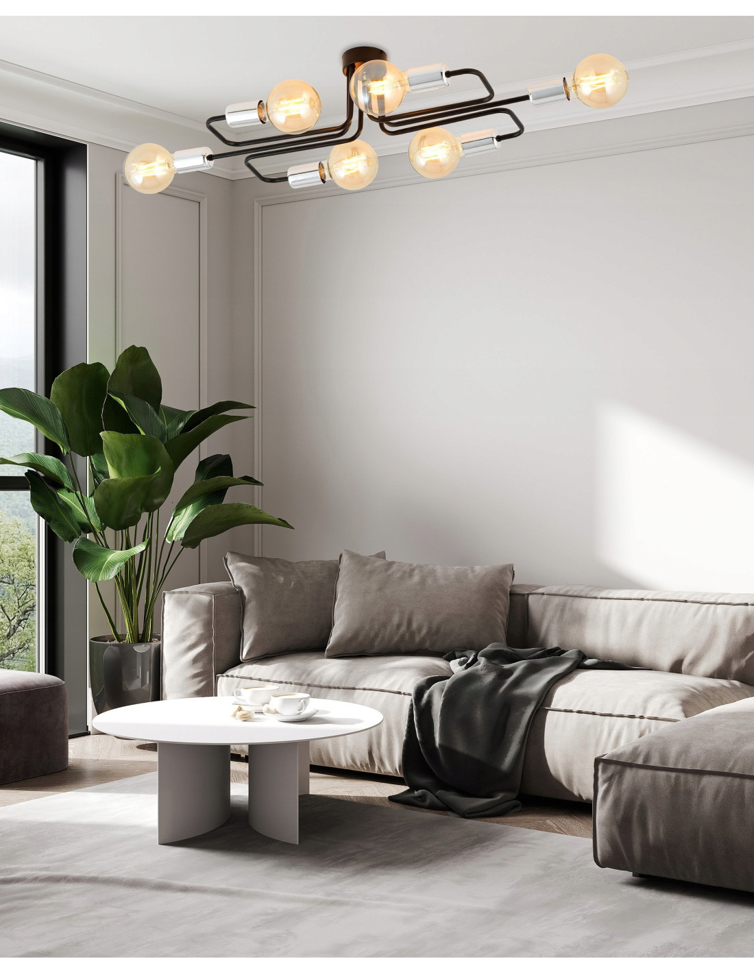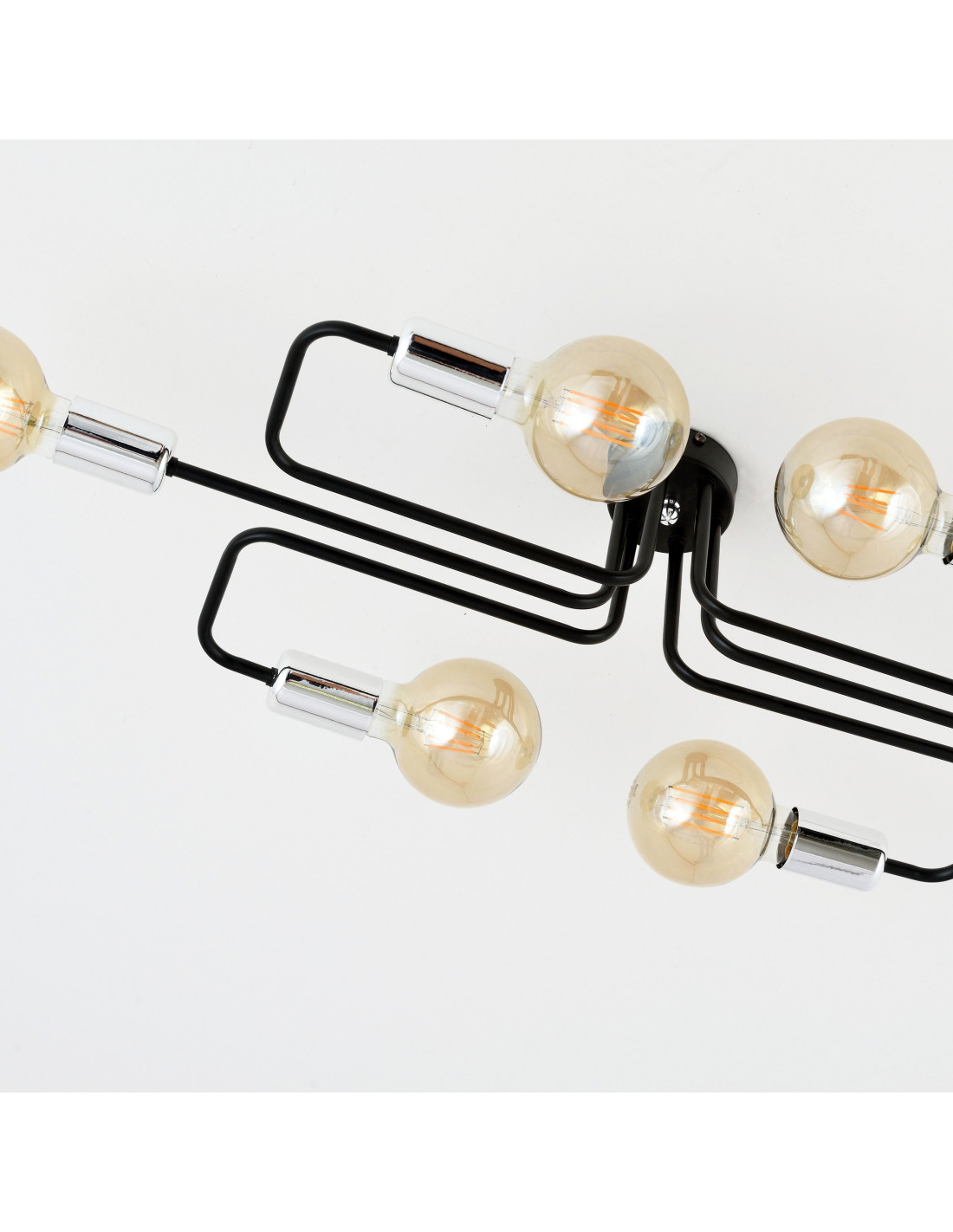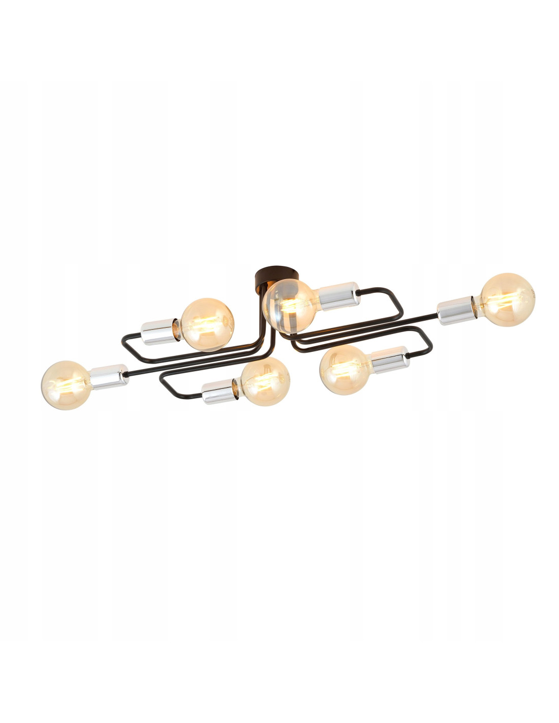 Plafon VEKEN wyróżnia się 6 punktami świetlnymi, które pozwalają na efektywne oświetlenie nawet większych przestrzeni. Zastosowanie żarówek o gwincie E27 (do nabycia osobno) sprawia, że możesz swobodnie dostosować intensywność światła do swoich potrzeb oraz wybrać dekoracyjne żarówki, które podkreślą charakter pomieszczenia.