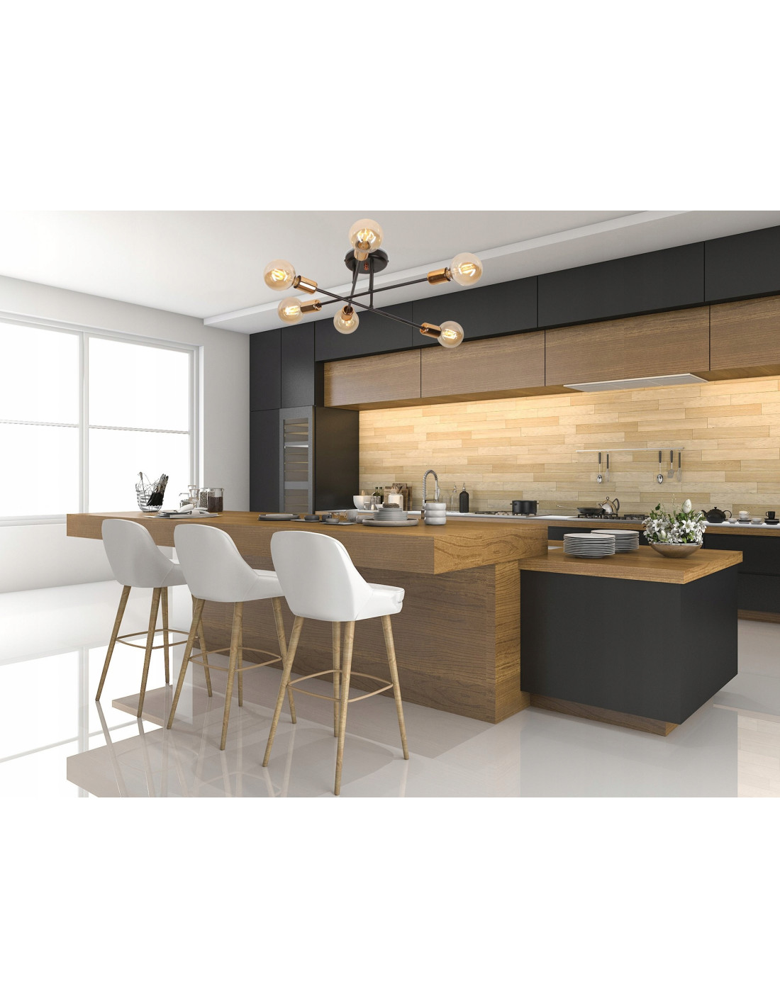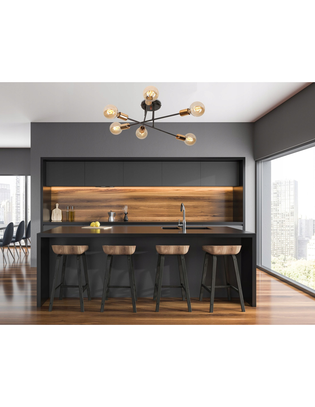 Tego rodzaju plafon nadaje się zarówno do nowoczesnych, jak i klasycznych wnętrz, wprowadzając niepowtarzalny klimat. Jego okragły kształt sprawia, że jest idealnym rozwiązaniem do dużych pomieszczeń, gdzie wymagana jest maksymalna efektywność świetlna. Oferując miejsce na 6 źródeł światła E27, z łatwością oświetli każdy zakątek Twojego domu.