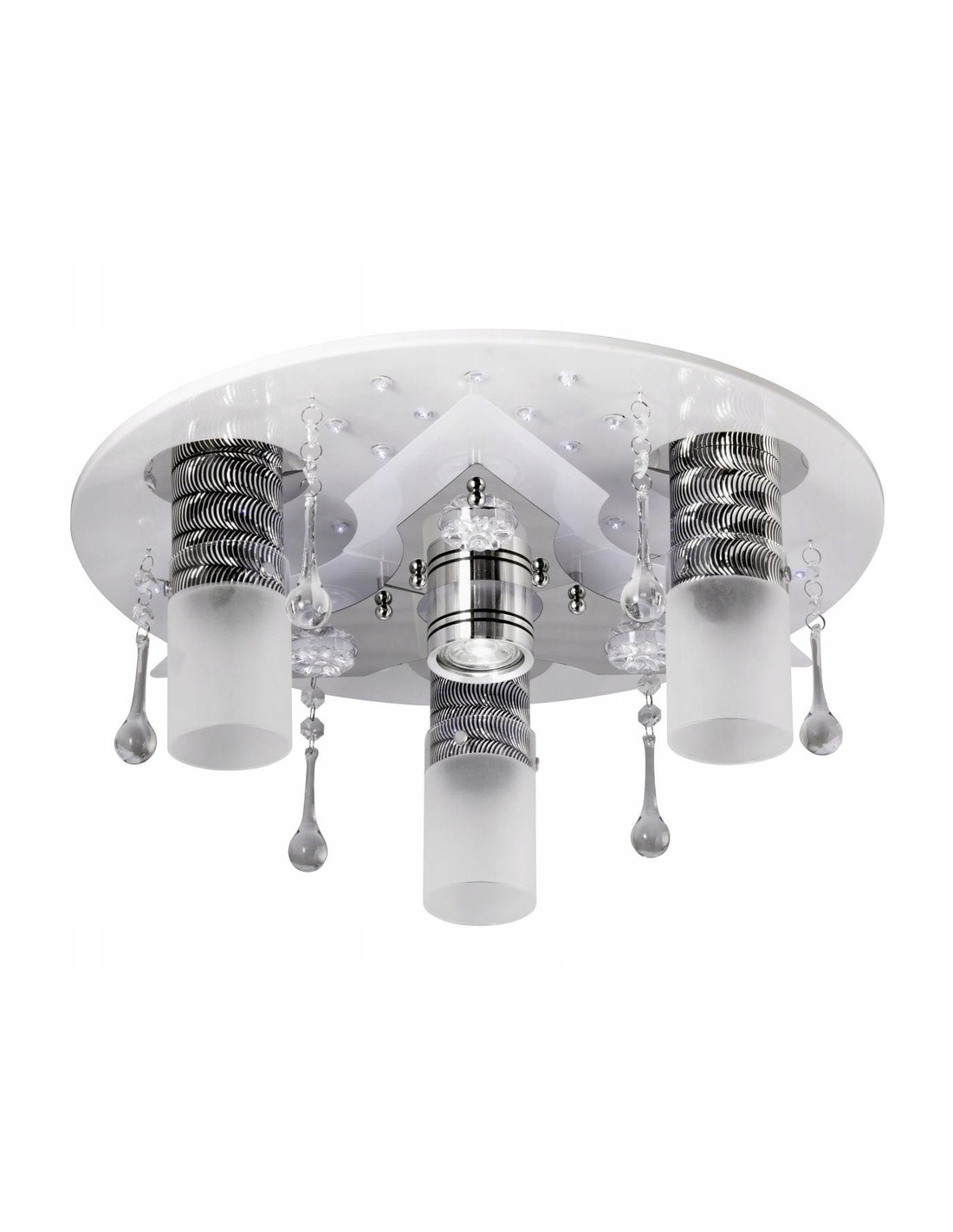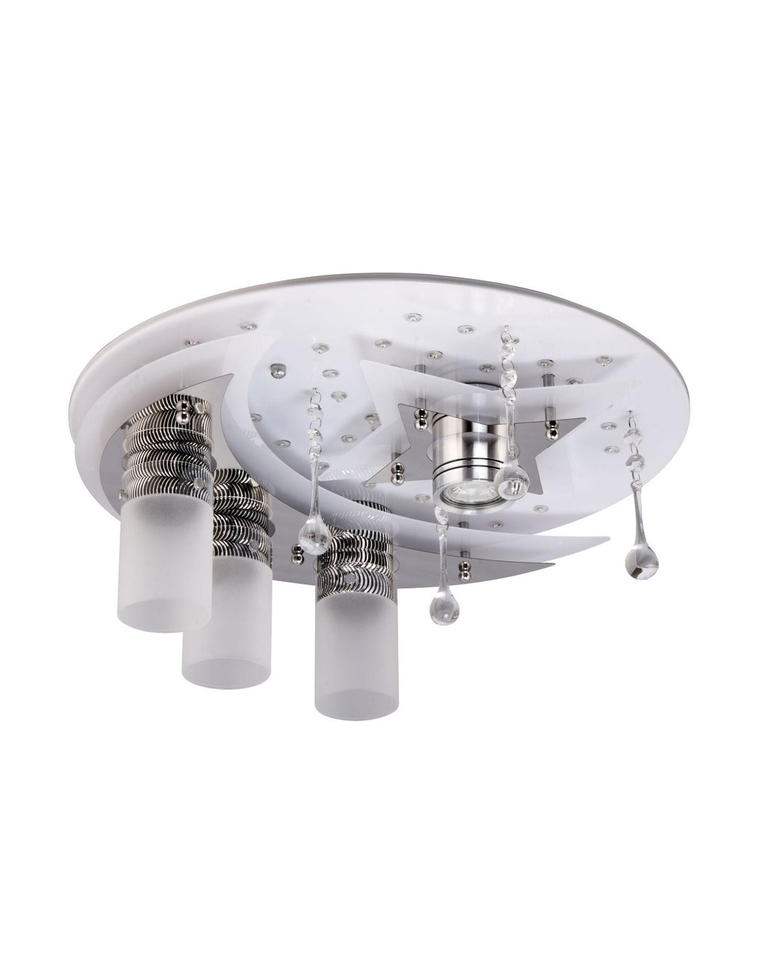 Wykonany z wysokiej jakości materiałów, plafon cechuje się białym metalowym tłem oraz mlecznymi i chromowymi akcentami. Projektanci zadbali o to, aby elementy dekoracyjne w postaci kryształków skutecznie rozpraszały światło, tworząc przytulną atmosferę. To rozwiązanie idealne dla dzieci, które za sprawą delikatnego światła będą mogły cieszyć się spokojnym snem.