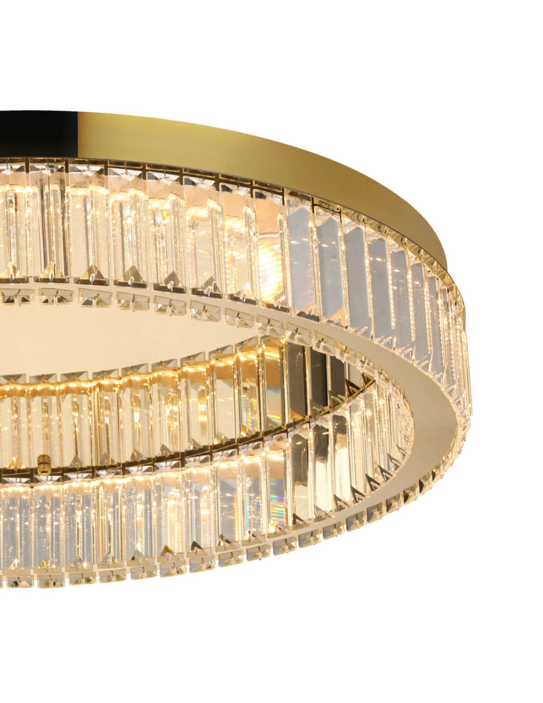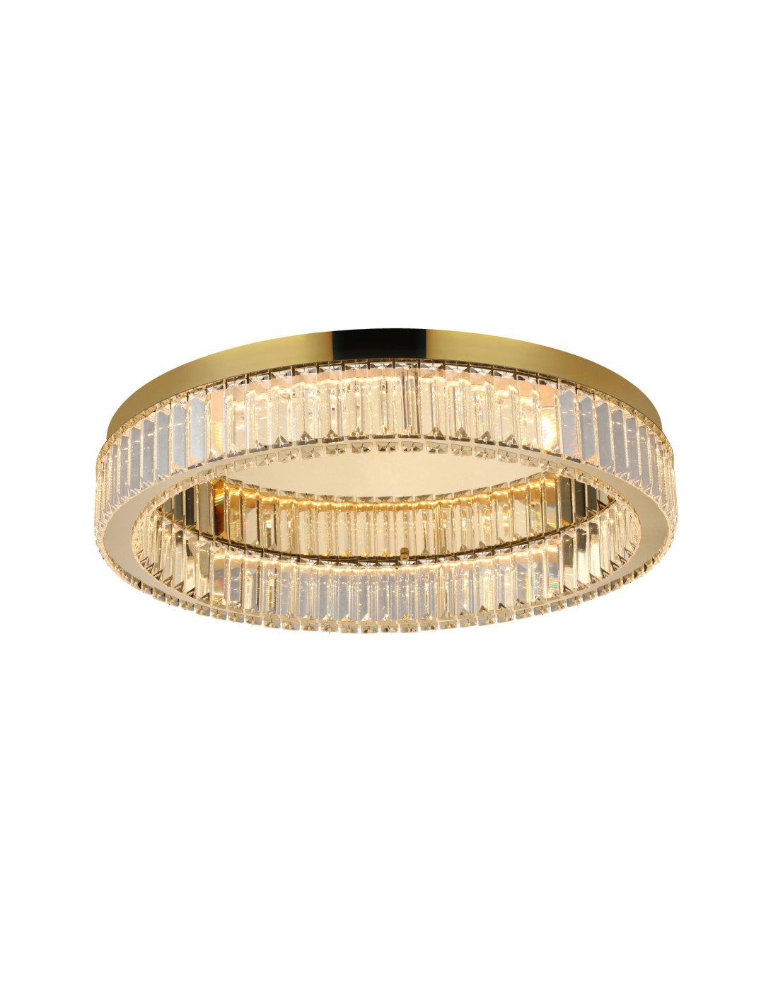 Przedstawiamy duży plafon glamour okrągły kryształowy SPARK TOP 60 LED, idealny element do dekoracji każdego eleganckiego wnętrza. Jego nowoczesny design w połączeniu z złotym wykończeniem i kryształowymi elementami sprawia, że każdy kto na niego spojrzy od razu poczuje atmosferę luksusu. Oświetlenie to doskonale sprawdzi się w salonie, sypialni lub jadalni, dodając im wyjątkowego charakteru.