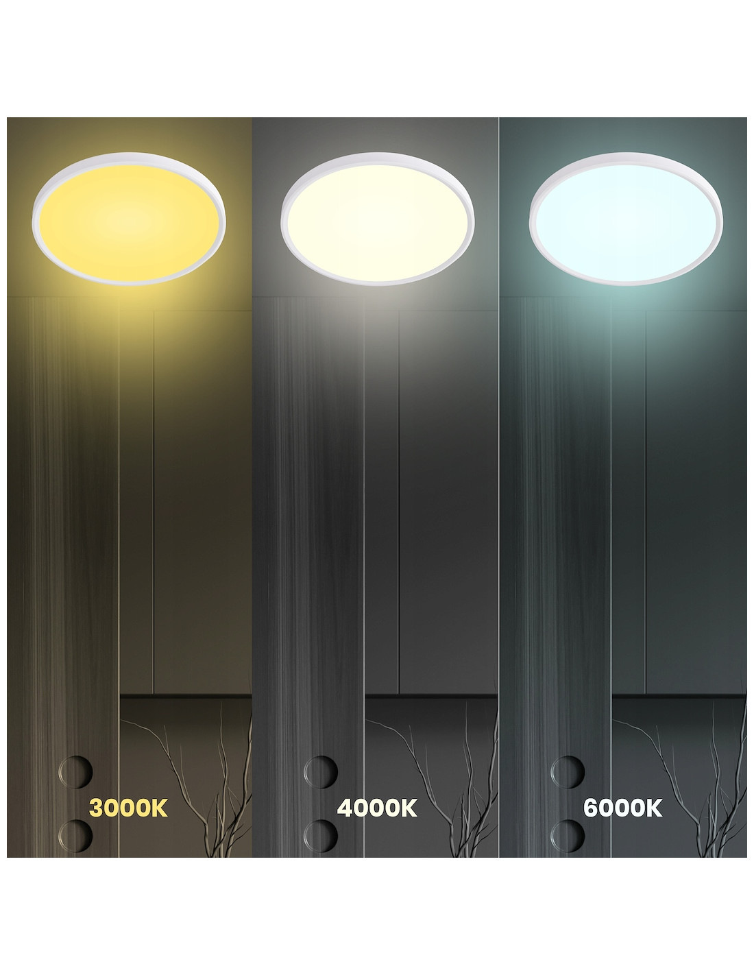 Jednym z najważniejszych atutów plafonu MAQ jest możliwość regulacji barwy światła. Użytkownik może dostosować oświetlenie do swoich preferencji w trzech różnych temperatura kolorystycznych: 3000K (ciepła biel), 4000K (neutralna biel) oraz 6500K (zimna biel). Dzięki temu, każda chwila w pomieszczeniu może być tworzona zgodnie z własnym nastrojem oraz potrzebami.
