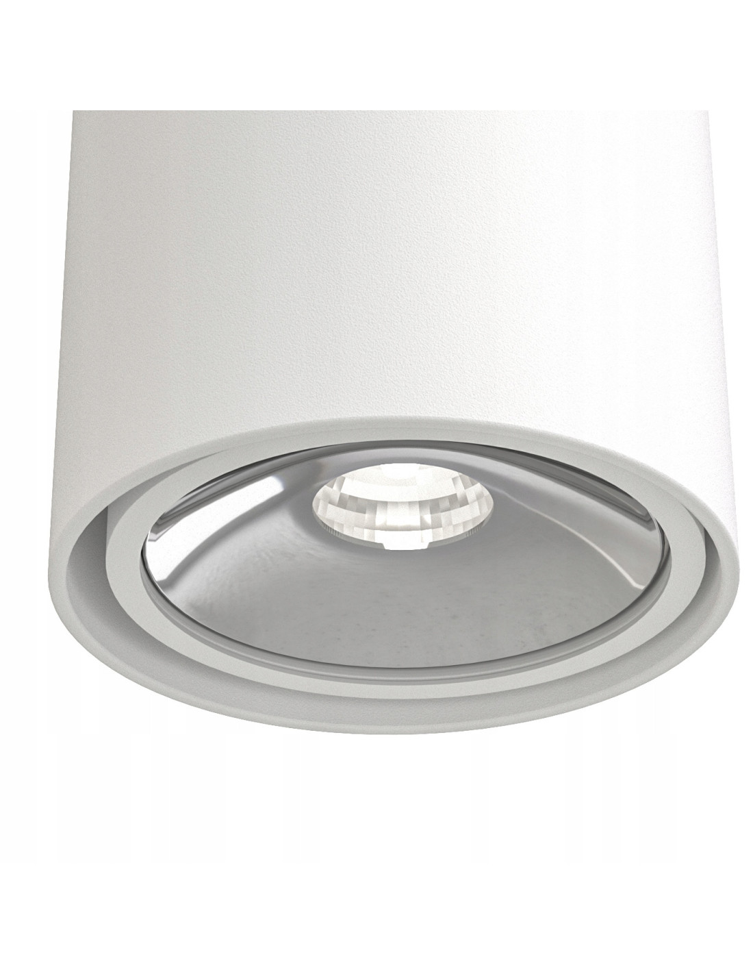 - Materiał: aluminium w kolorze białym matowym oraz chromowany pierścień redukcyjny