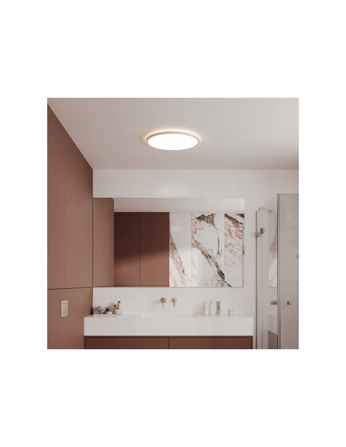 Wykonany z wysokiej jakości tworzywa sztucznego w kolorze białym, plafon charakteryzuje się minimalistycznym stylem, który sprawdzi się w salonie, sypialni, kuchni, przedpokoju, biurze, jadalni oraz pokoju dziecięcym. Jego mleczna blenda gwarantuje równomierne rozproszenie światła, tworząc przytulną i harmonijną atmosferę.
