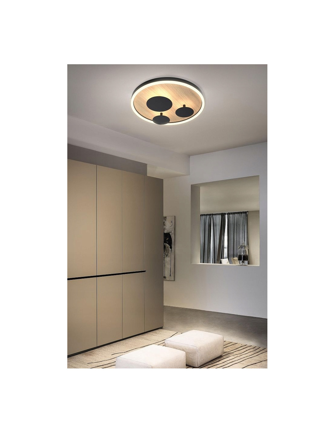 Ten plafon dostępny jest w dwóch rozmiarach: 40 cm oraz 60 cm, co pozwala na idealne dopasowanie do różnorodnych pomieszczeń. Bez względu na to, czy chcesz oświetlić salon, jadalnię czy hol, plafon Reims z pewnością spełni Twoje oczekiwania. Jego okragły kształt i połączenie koloru drewna z elegancką czernią nadają mu ponadczasowy charakter.