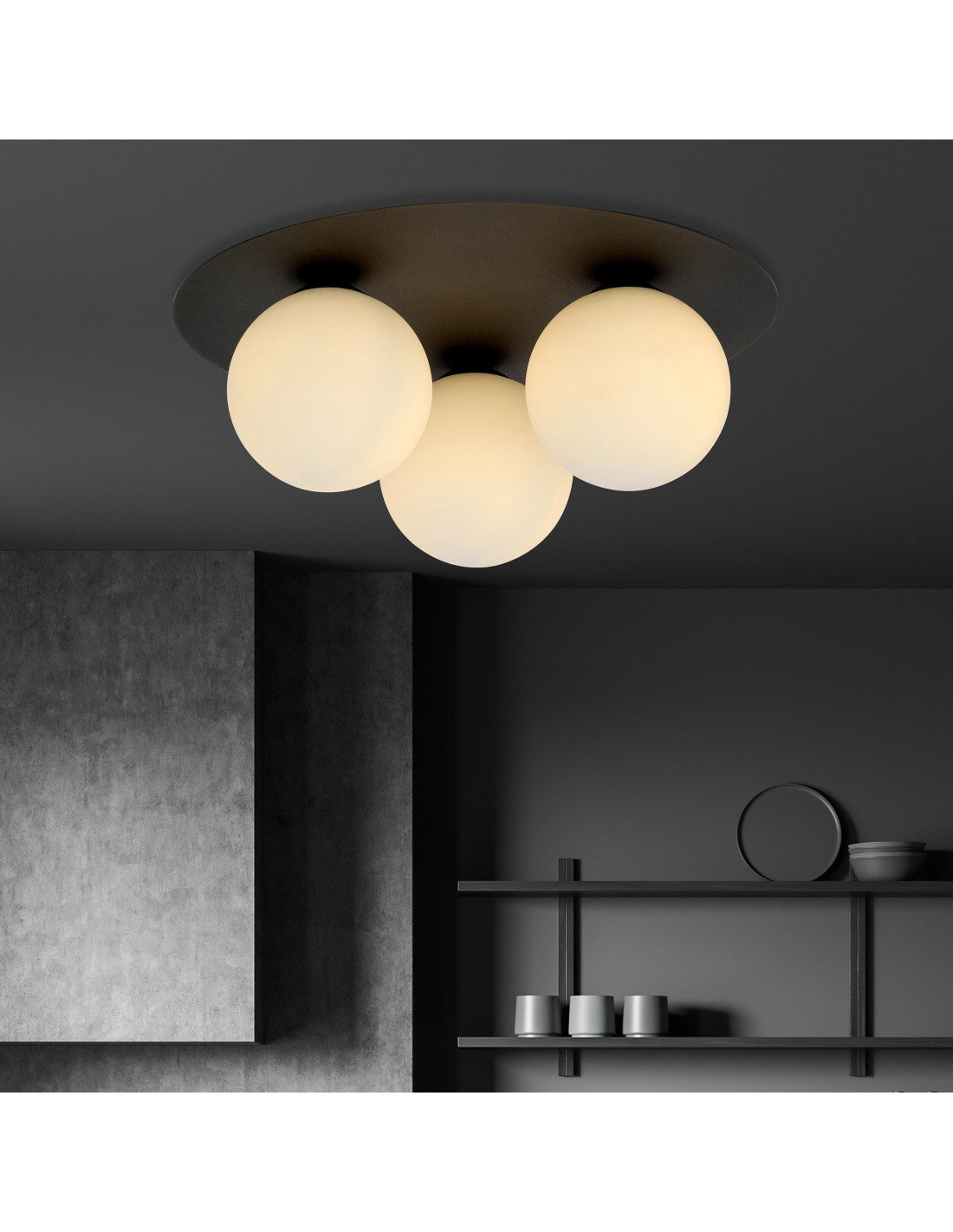 Plafon SOLAR wykonany jest z wysokiej jakości materiałów, takich jak metal i szkło, co gwarantuje jego trwałość i estetyczny wygląd na długie lata. Dzięki różnorodnym kolorom kloszy, w tym grafitowym, miodowym, transparentnym oraz stripe, możesz dostosować oświetlenie do swoich indywidualnych preferencji oraz stylu aranżacji. Jego unikatowy design świetnie wpisuje się w estetykę minimalizmu.