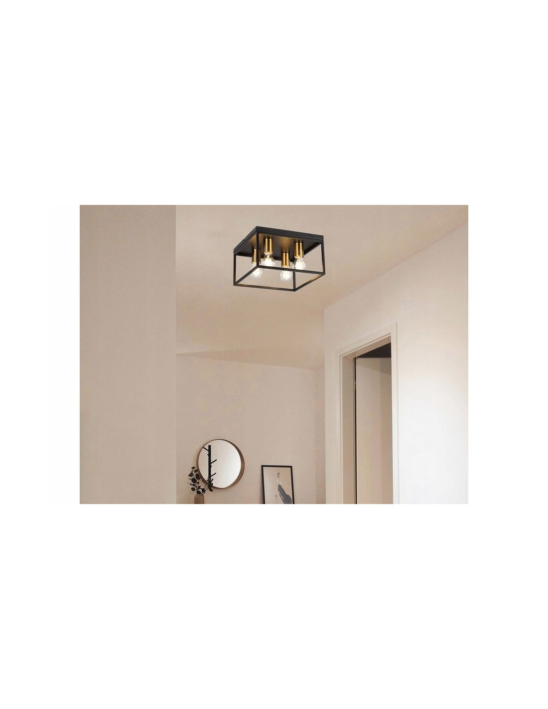 Plafon wykonany z metalu cechuje się solidnością i trwałością, co sprawia, że jest to inwestycja na długie lata. Czarna klatka w połączeniu z złotym wykończeniem sprawia, że produkt wpisuje się w najnowsze trendy wnętrzarskie, idealnie komponując się z nowoczesnym minimalizmem oraz kształtując aurę luksusu w kuchni czy salonie.