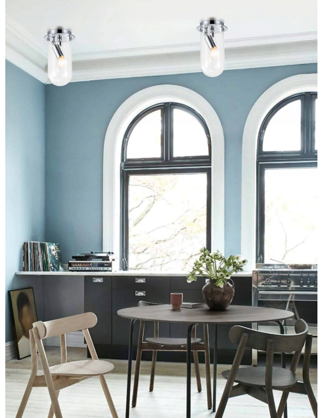 Niebanalny lampion Luci to elegancki i nowoczesny plafon, który z pewnością wzbogaci każde wnętrze. Wykonany z wysokiej jakości transparentnego szkła oraz metalowej podstawy o chromowanym wykończeniu, łączy w sobie styl i funkcjonalność. Idealnie sprawdzi się zarówno w kuchni, jak i w przedpokoju, wprowadzając do pomieszczenia subtelny, industrialny klimat.