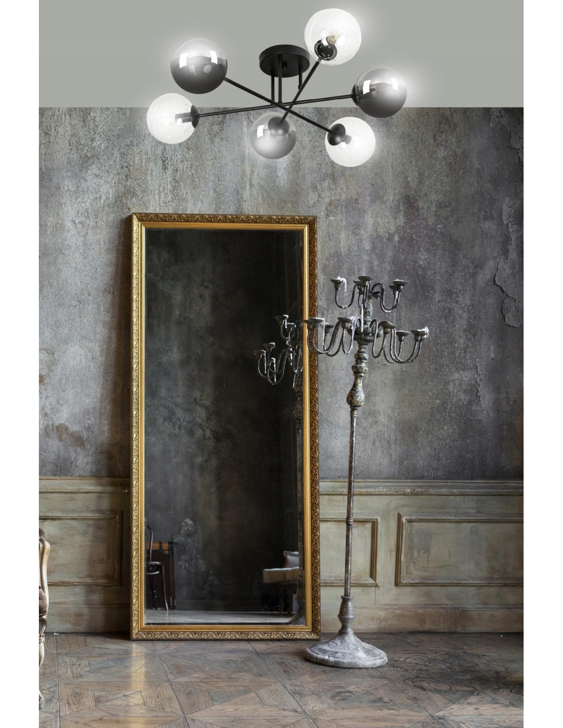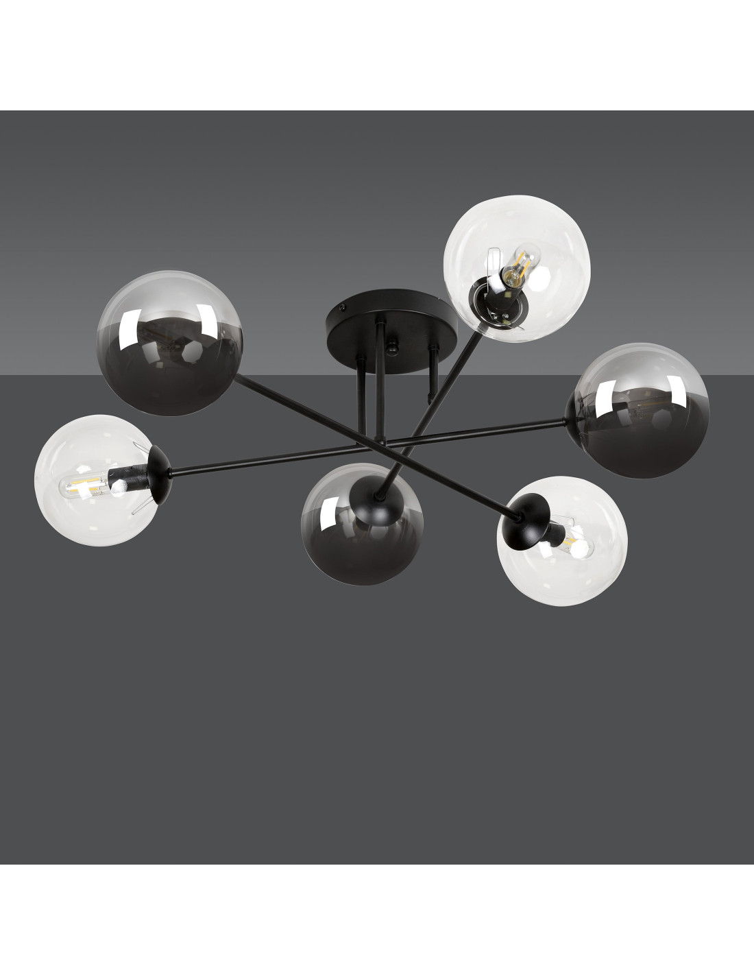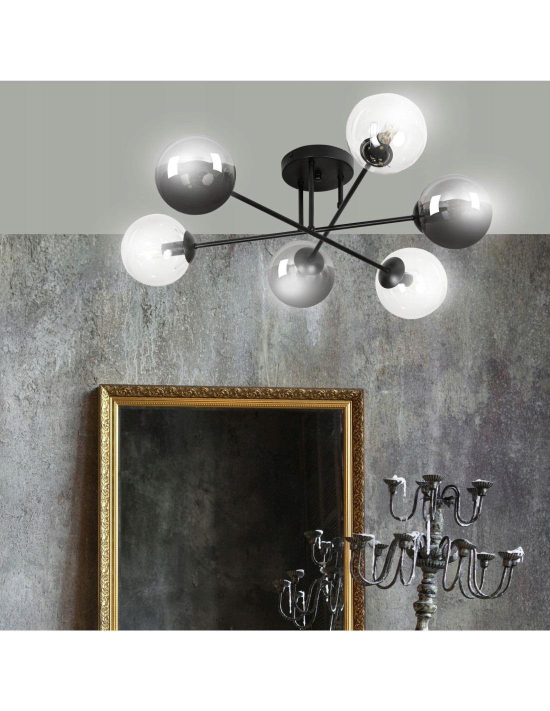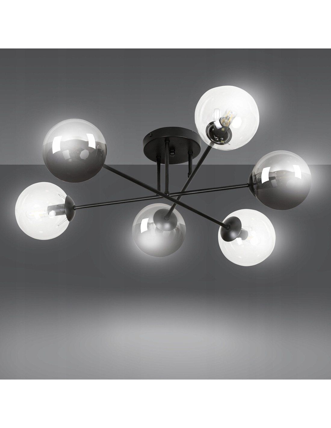 Dzięki zastosowaniu przezroczystych szklanych kloszy, ten plafon wprowadza do pomieszczeń lekkość i wyrafinowanie. Transparentne detale lampy tworzą niepowtarzalny nastrój, doskonale oświetlając przestrzeń i nadając jej przytulny charakter. BRENDI skutecznie oświetli duże obszary, sprawiając, że każdy kąt zyska przyjemne światło.