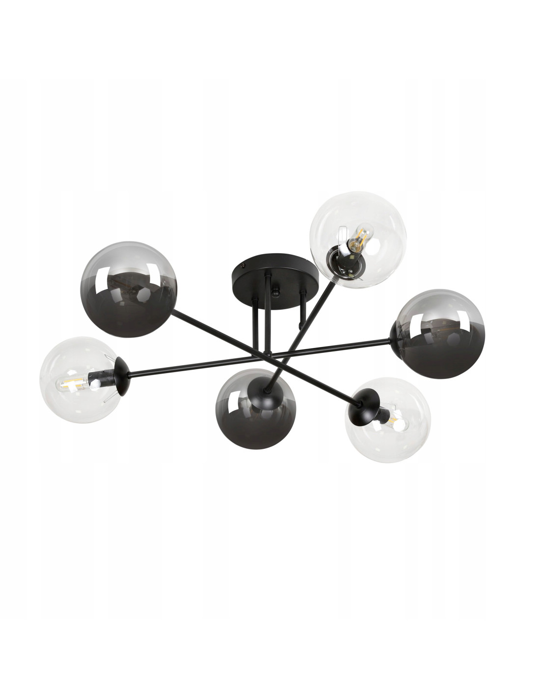 Plafon dostępny jest w różnych kolorach kloszy, w tym grafitowym, miodowym oraz transparentnym, co pozwala na łatwe dopasowanie go do indywidualnych potrzeb i stylu your home. Zdecydowane połączenie metalu z szkłem podkreśla jego elegancję oraz trwałość, co jest rezultatem użycia materiałów najwyższej jakości.