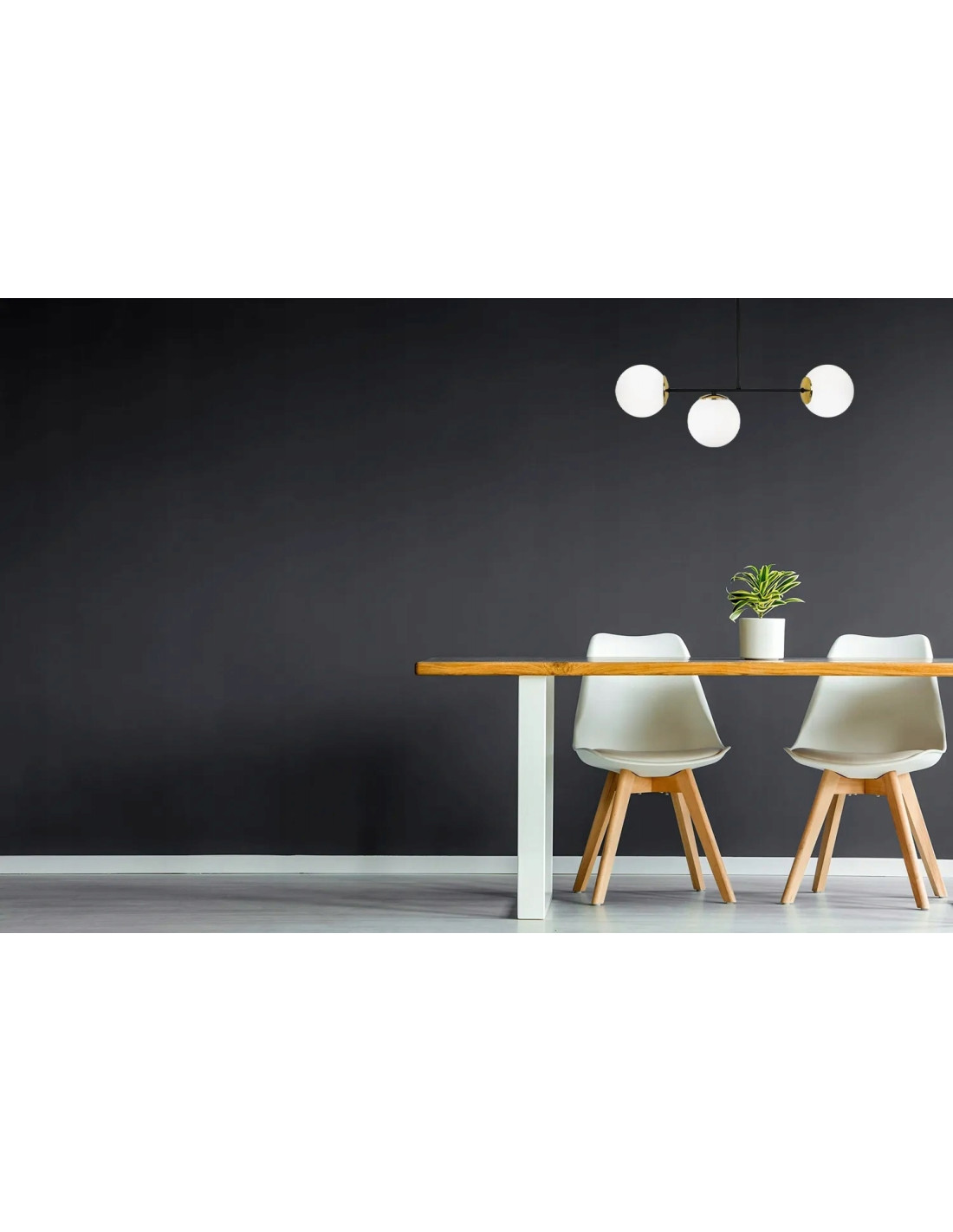Osprzęt ten dostarcza przyjemne, rozproszone światło, które wprowadza ciepłą atmosferę w pomieszczeniach, gdzie się znajduje. W szczególności polecany jest do przestrzeni, które potrzebują subtelnego, ale zarazem stylowego akcentu. Regularne rozmieszczenie trzech kloszy nadaje wnętrzu wyjątkową harmonię, co czyni go idealnym wyborem dla osób ceniących sobie zarówno nowoczesność, jak i klasyczny urok.