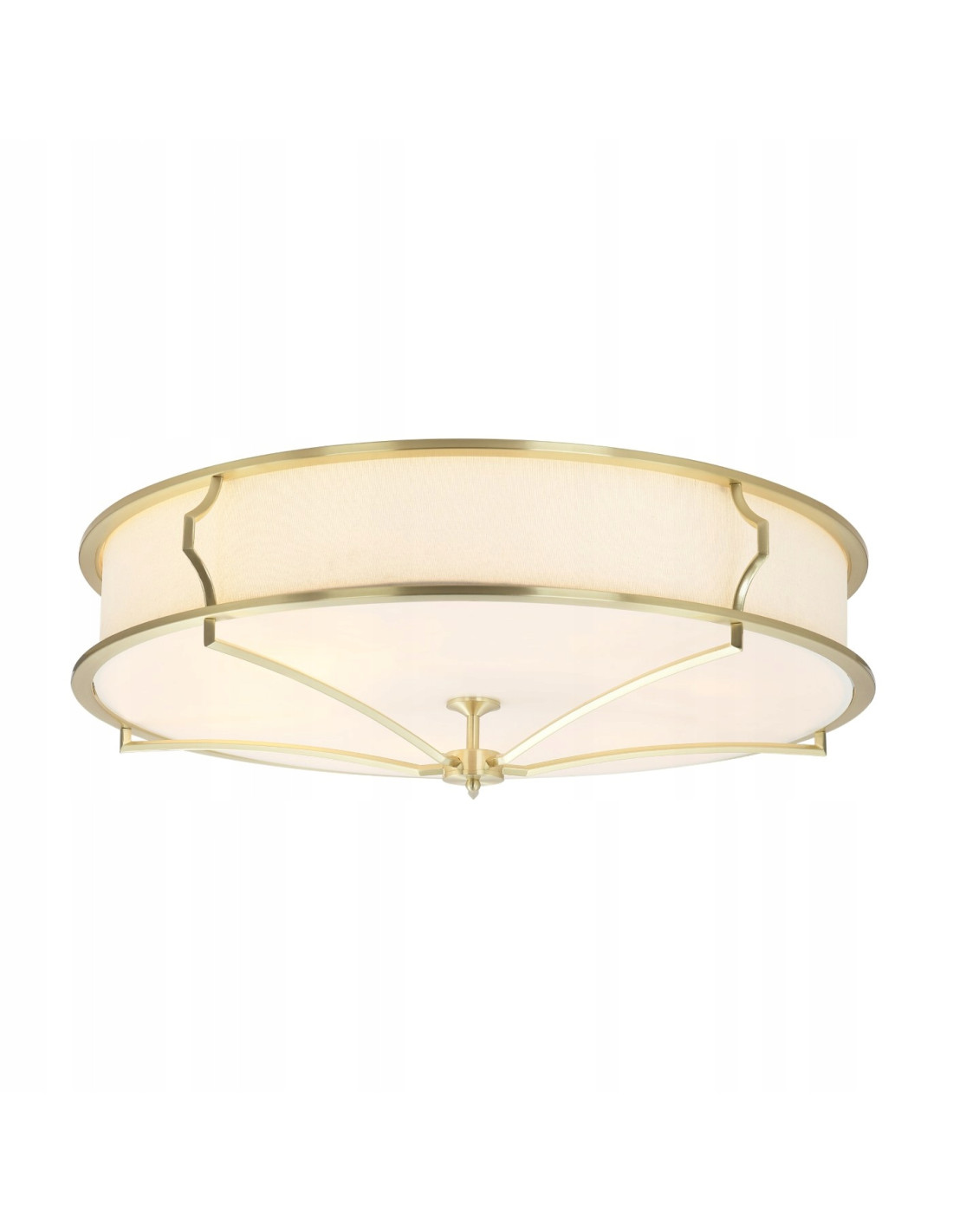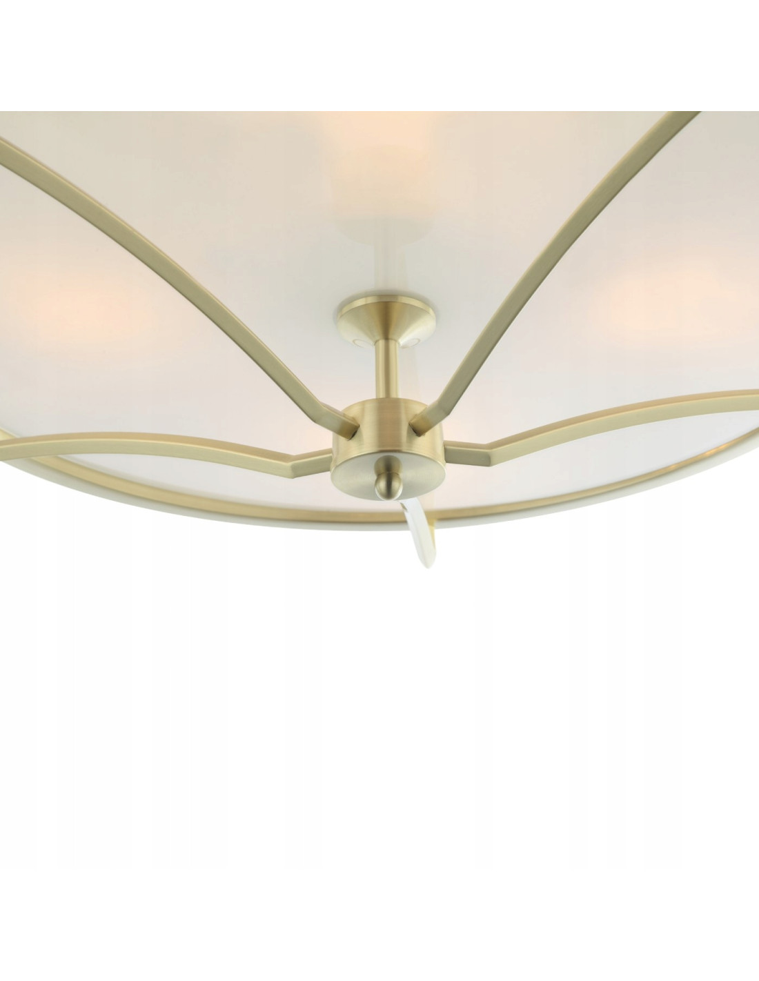 - Materiał i kolor: Metal w kolorze złota satynowego, tkanina w białym kremowym odcieniu oraz szkło matowe w białym kolorze.