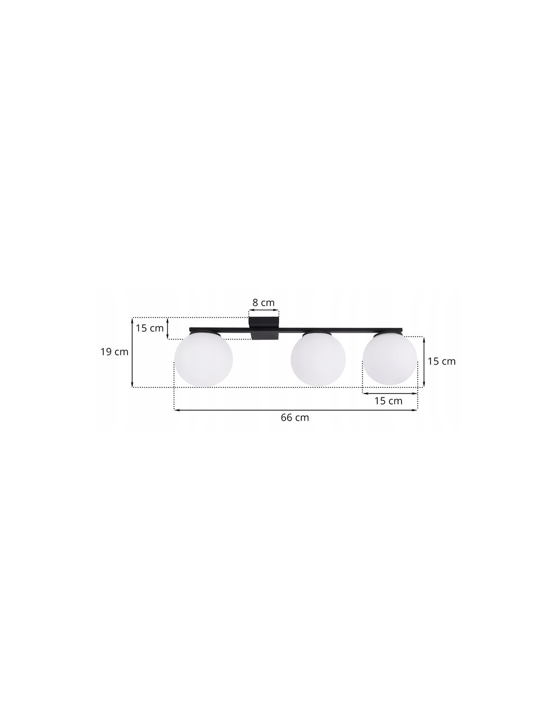 Plafon o wysokości 19 cm i szerokości 66 cm doskonale wpasuje się w różne metraże pomieszczeń, a dzięki swojej oryginalnej formie przyciągnie wzrok każdego gościa. Dominuje nad nim elegancki czarny kolor, który idealnie współgra z białymi kloszami, tworząc harmonijną całość. Produkt rozjaśni przestrzeń, dodając jej nowoczesnego wyrazu.