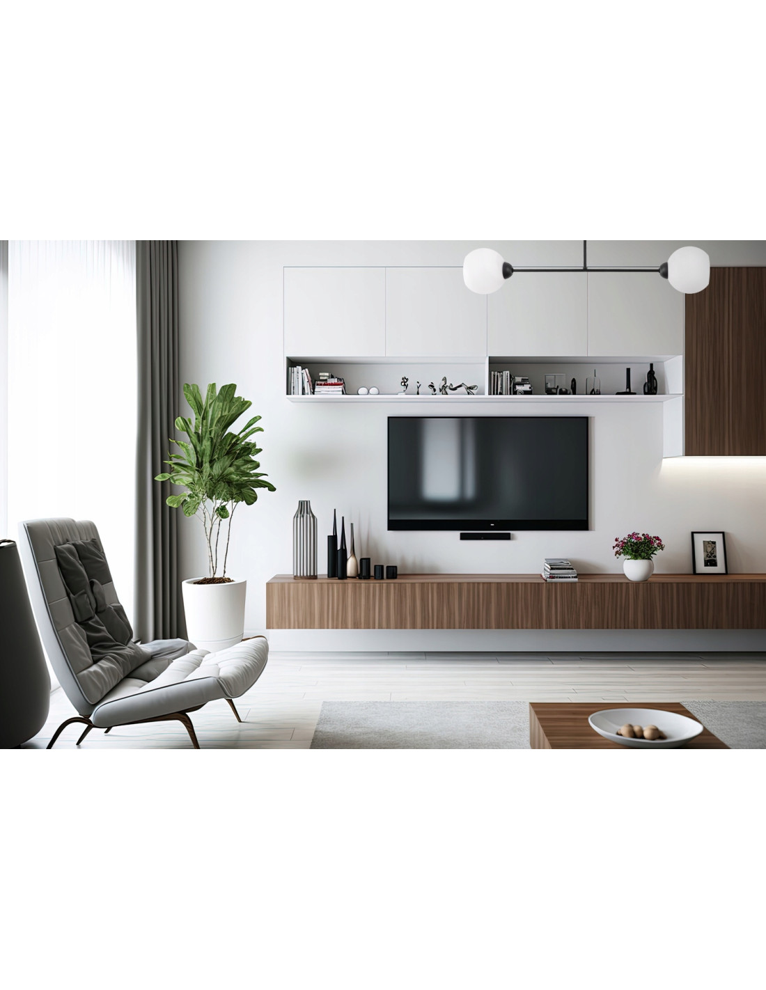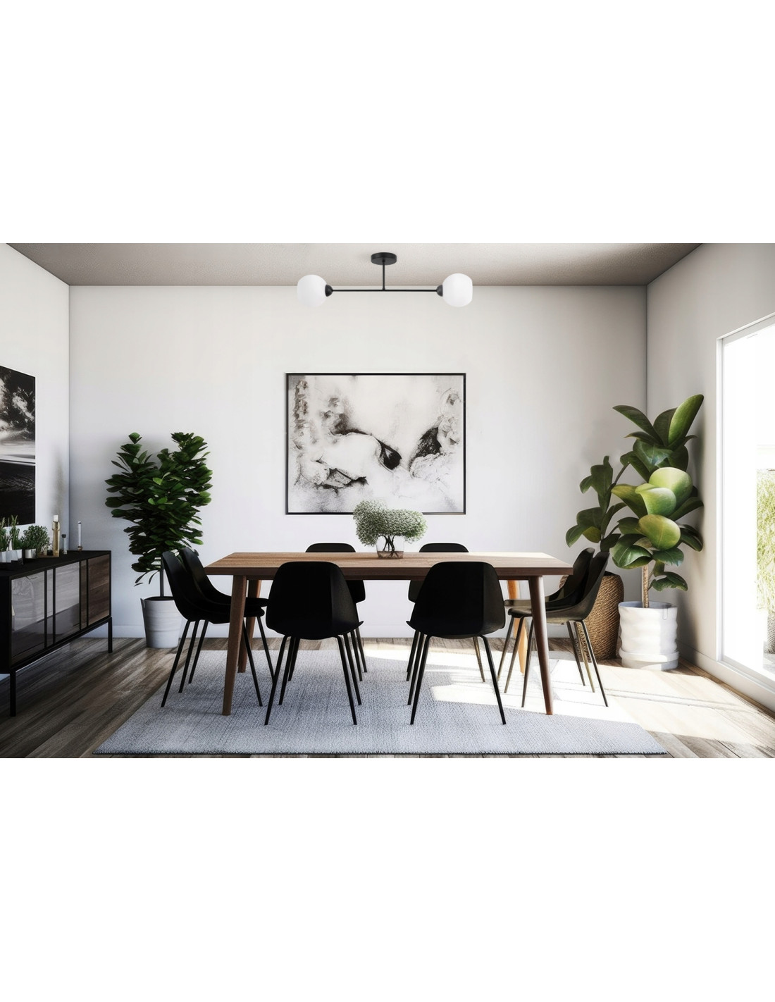 Wyróżniające się matowymi białymi kloszami położonymi na końcach metalowego ramienia w czarnym wykończeniu, plafon ASTURIA zapewnia równomierne oświetlenie, które tworzy przytulną atmosferę w każdym pomieszczeniu. Dzięki swojej minimalistycznej formie będzie doskonałym dodatkiem do wnętrz w stylu skandynawskim, nowoczesnym, a także glamour.