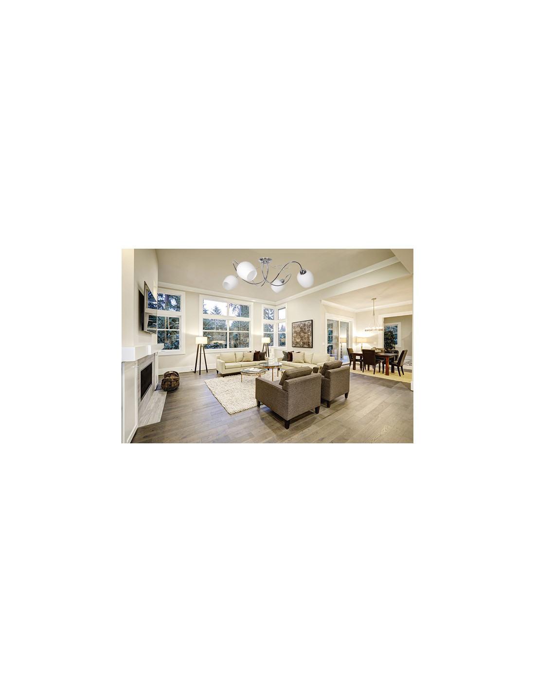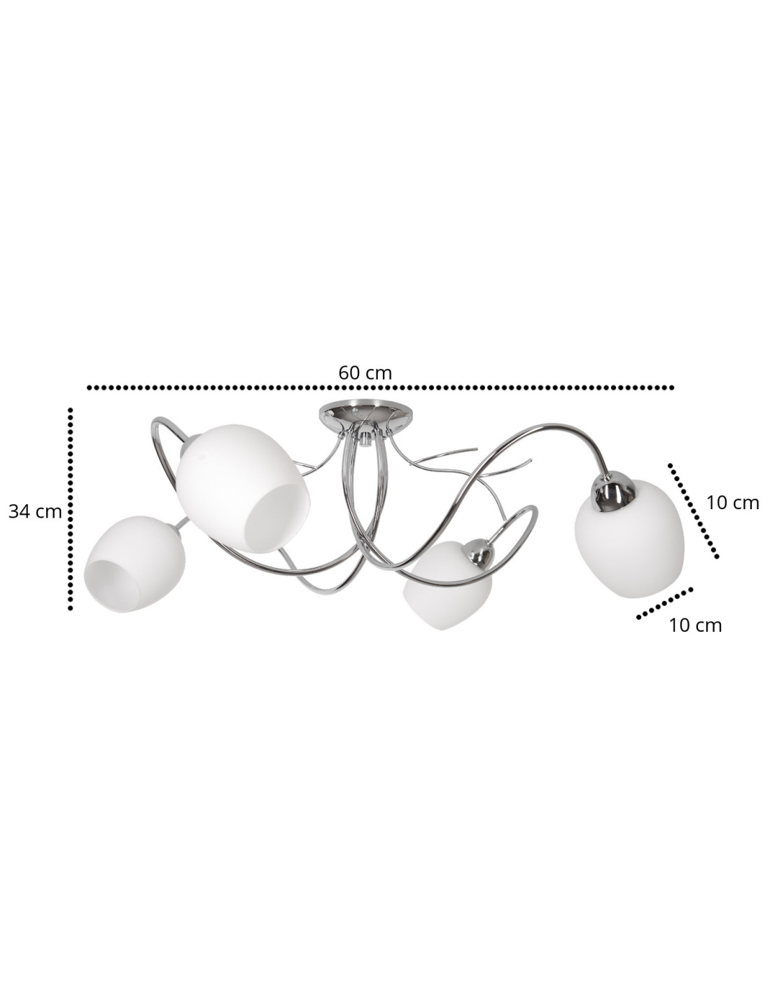 Chromowy plafon z białymi kloszami Dorika E14 to połączenie elegancji i nowoczesnego stylu, które z pewnością wzbogaci wystrój każdego wnętrza. Stylowa lampa wisząca w formie czteropłomiennego żyrandola doda niepowtarzalnego charakteru w różnorodnych pomieszczeniach, takich jak salon, sypialnia, jadalnia czy korytarz. Jej wyjątkowy design sprawia, że jest doskonałym elementem dekoracyjnym, który harmonijnie wpasuje się w każdy styl aranżacji.