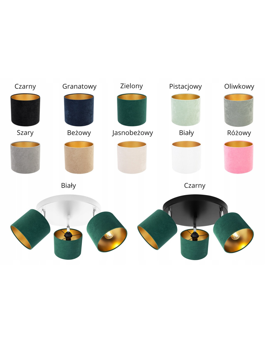 Dzięki złotemu wnętrzu oraz dostępności aż 10 kolorów abażurów, plafon ten jest niezwykle uniwersalny. Możliwość wybrania koloru abażura oraz konstrukcji sprawia, że bez problemu dopasujesz go do swojego wnętrza. Możesz zdecydować się na klasyczne połączenie czarnego lub białego stelaża, co w połączeniu z różnorodnością abażurów sprawia, że ten model z łatwością wkomponuje się w różne style aranżacyjne.