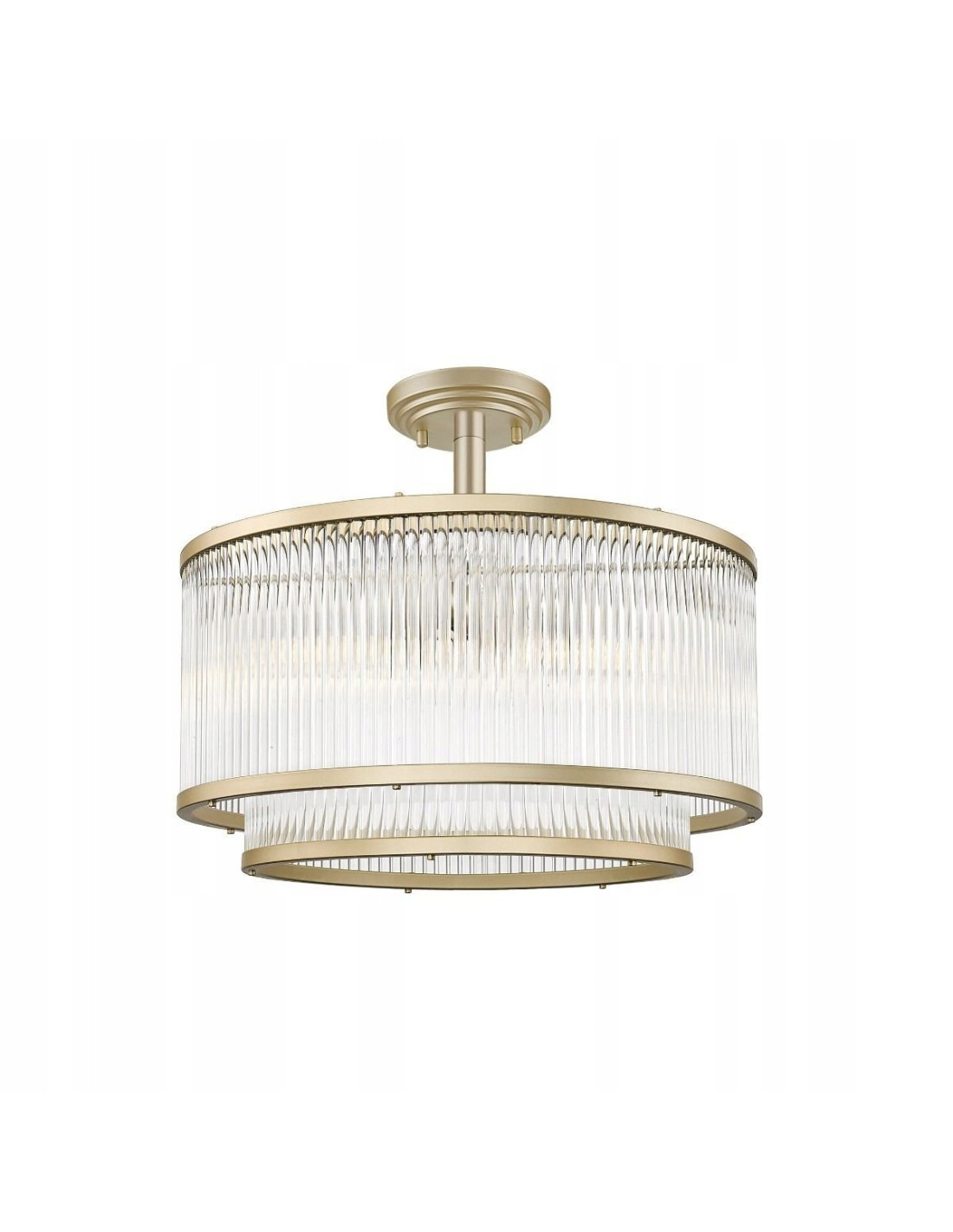 Plafon SERGIO charakteryzuje się zachwycającym zestawieniem materiałów - metal w połączeniu z szkłem tworzy harmonijną całość, która przyciągnie wzrok i zaskoczy każdego gościa. Jego złoty kolor na pewno doskonale wpisze się w trendy wnętrzarskie, dodając blasku i wyjątkowego charakteru.