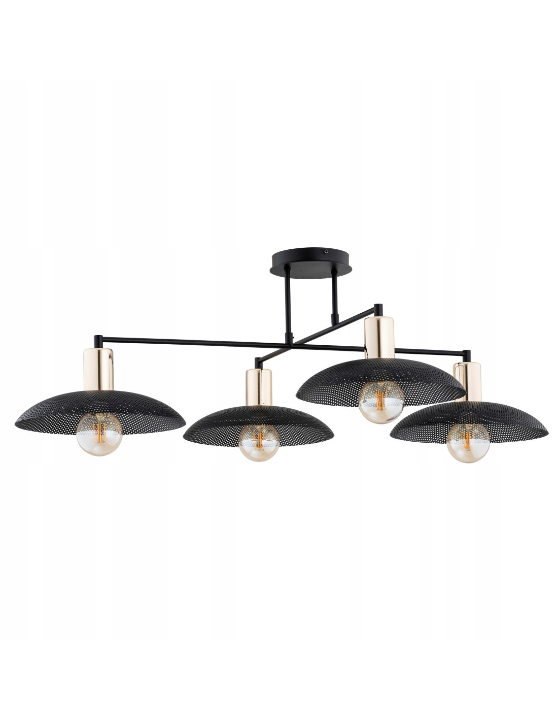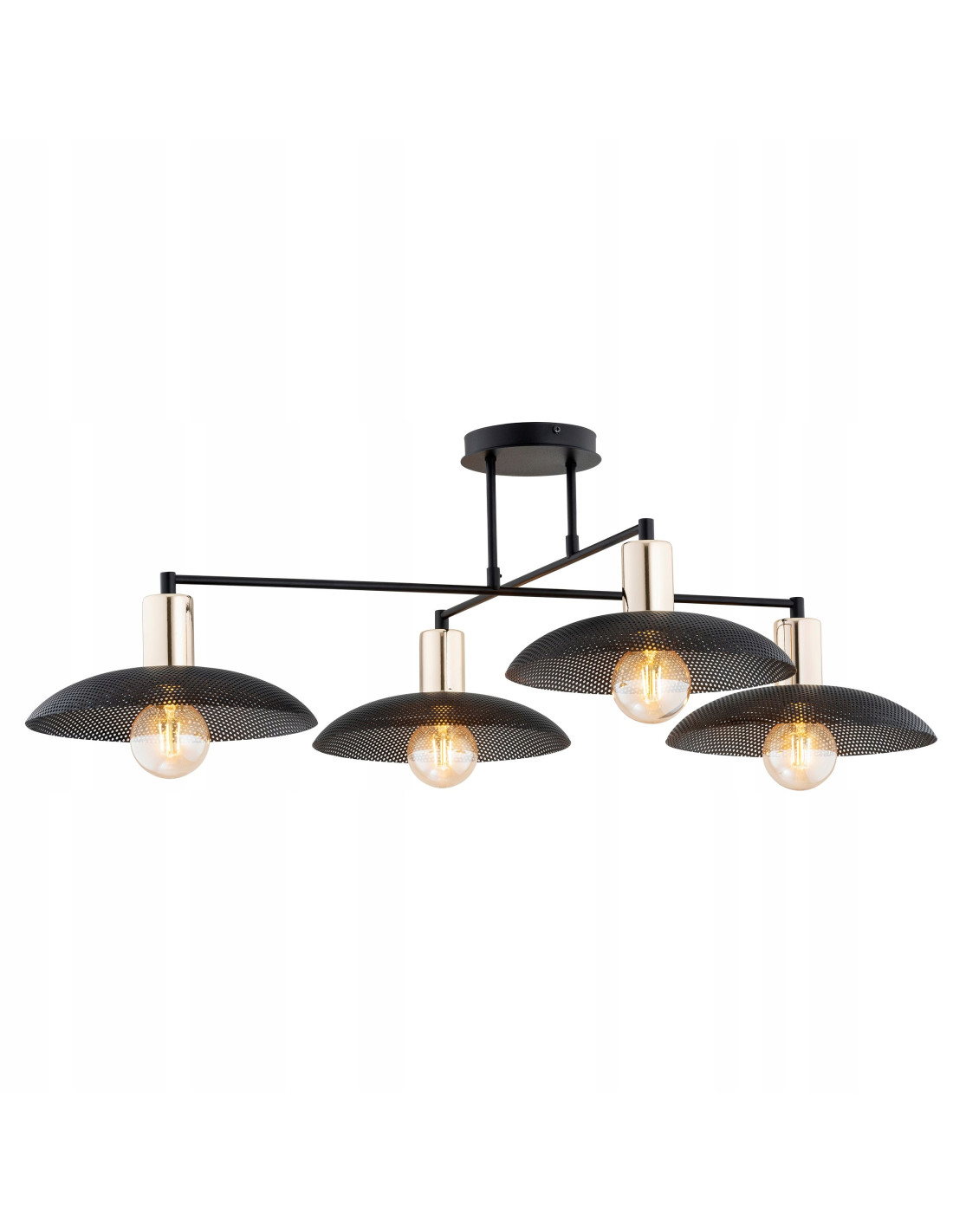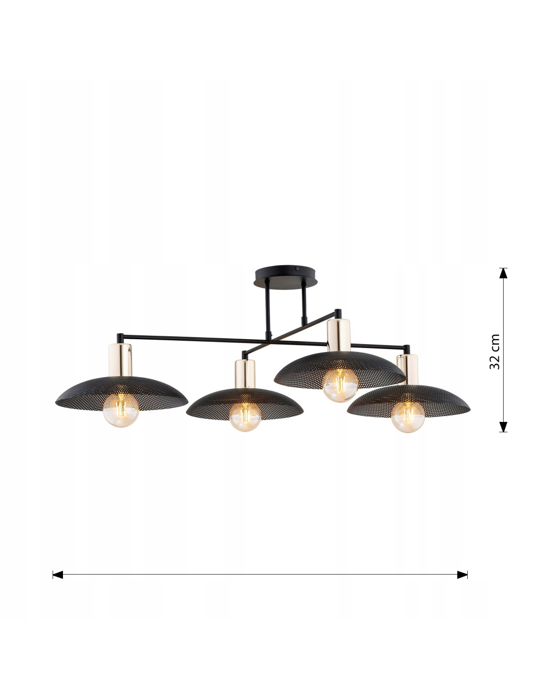 Zapraszamy do zapoznania się z czarnym plafonem z 4 kloszami z kolekcji SPIRIT, idealnym rozwiązaniem dla osób ceniących nowoczesny design. Ta wyjątkowa lampa nie tylko oświetli Twoje wnętrze, ale również stanie się jego elegancką dekoracją. Dzięki metalowym kloszom o interesującej fakturze, każdy element lampy przyciąga uwagę, a złote akcenty wprowadzają do aranżacji odrobinę luksusu.