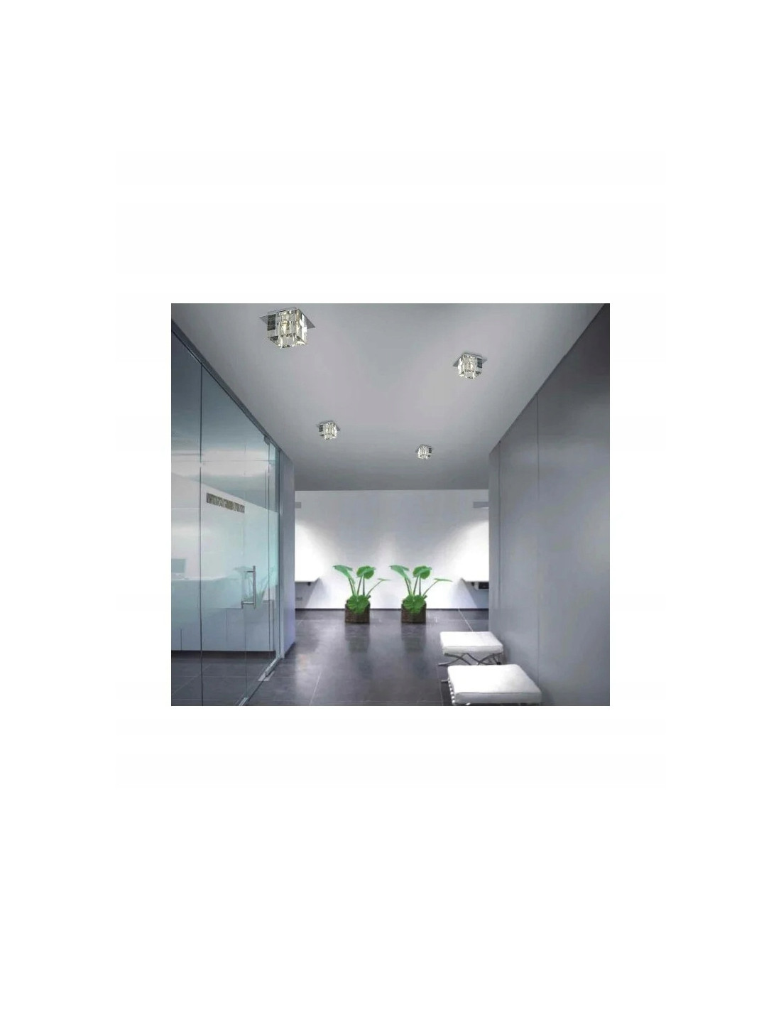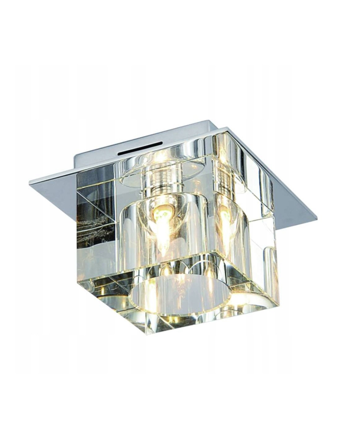 Wykonany z chromowanego metalu oraz przezroczystego szkła, plafon z kolekcji ROCCO gwarantuje nie tylko trwałość, ale również efektowny wygląd. Klasyczny kształt sześcianu sprawia, że światło subtelnie załamuje się wewnątrz, tworząc unikalną grę refleksów, która przyciąga wzrok i nadaje przestrzeni wyrafinowanego charakteru.