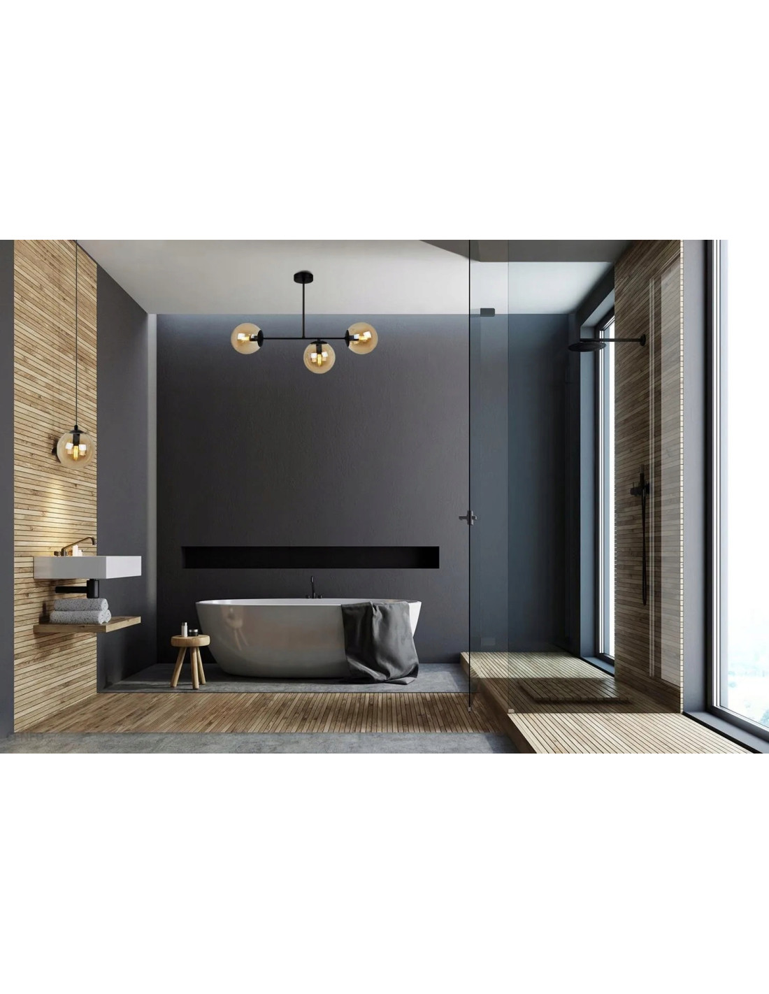 Bursztynowy plafon w eleganckiej czerni, zdobiony oryginalnymi okragłymi kloszami, to idealne rozwiązanie dla osób poszukujących nie tylko funkcjonalności, ale również estetycznego akcentu w swoich wnętrzach. Model Tuluza doskonale sprawdzi się jako oświetlenie nad wyspą kuchenną, w jadalni czy salonie, wprowadzając do każdego pomieszczenia wyjątkowy klimat.