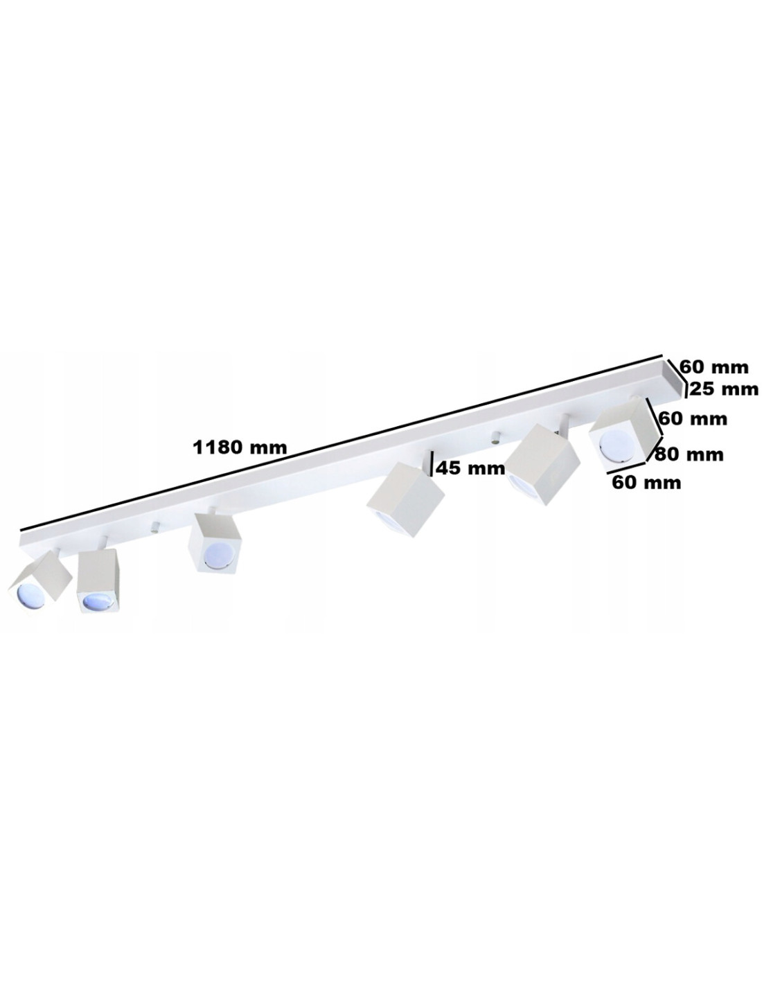 Wymiary kinkietu są odpowiednio dostosowane do użytku w rozmaitych wnętrzach. Jego wysokość to 118 cm, szerokość 6 cm, a głębokość 8 cm. Umożliwia to łatwe dopasowanie do innych elementów wystroju pomieszczenia. Kinkiet wykorzystuje 6 punktów świetlnych, co generuje mocne i równomierne światło, a jednocześnie oferuje swobodę w aranżacji źródeł światła. Wszystkie reflektory wyposażone są w gniazdo GU10, co zwiększa ich uniwersalność.
