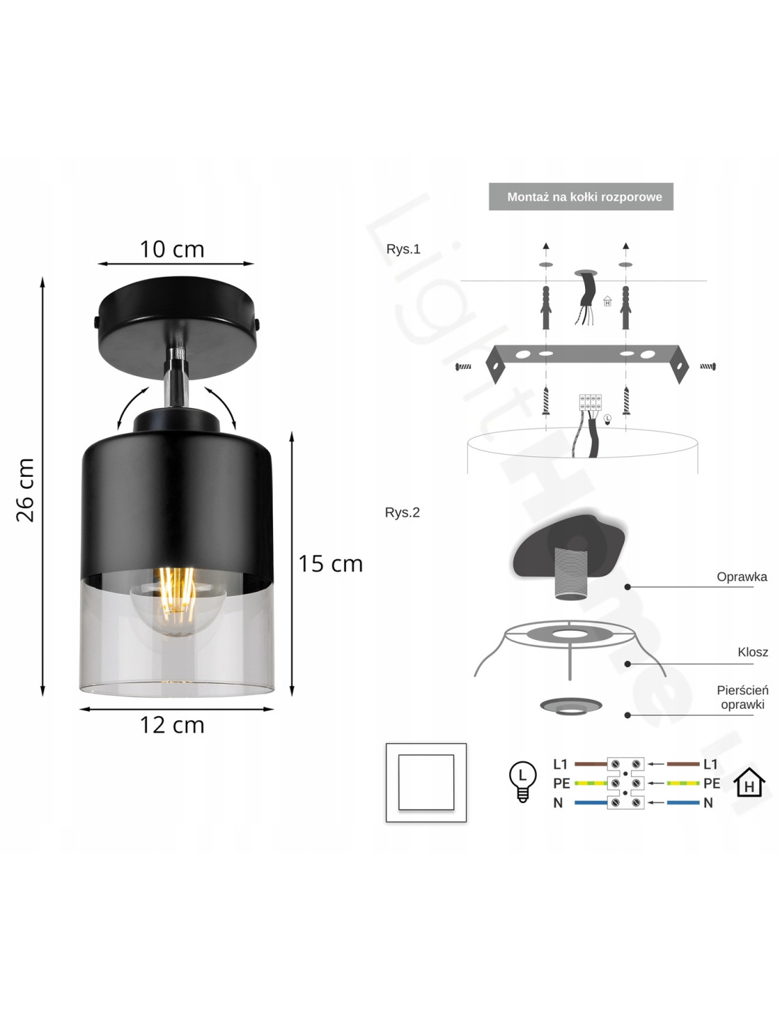 Parametry techniczne reflektora ROMA również zasługują na uwagę. Lampa ma wysokość 26 cm i szerokość 10 cm, co czyni ją idealnym elementem do niewielkich przestrzeni. Wyposażona jest w źródło światła E27 o maksymalnej mocy 60W, co zapewnia odpowiednią jasność przy zachowaniu wysokiej klasy efektywności energetycznej. Należy pamiętać, że źródło światła nie jest dołączone do zestawu.