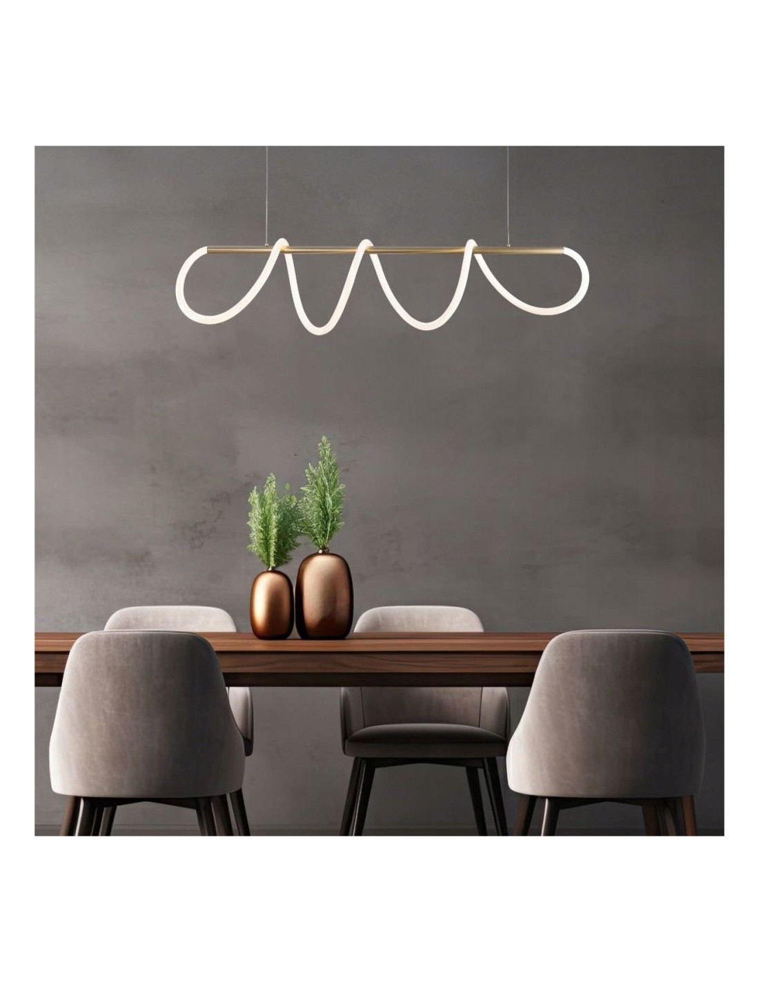Złota listwa LED BALBO 120 cm to elegancka i funkcjonalna lampa wisząca, zaprojektowana z myślą o nowoczesnych wnętrzach. Połączenie matowego metalu z subtelnymi złotymi akcentami nadaje jej ponadczasowy charakter, który doskonale sprawdzi się zarówno w kuchni, jadalni, salonie, jak i w przestrzeni biurowej. Solidne wykonanie i minimalistyczna forma sprawiają, że lampa staje się dyskretnym, a zarazem wyrazistym elementem wystroju.