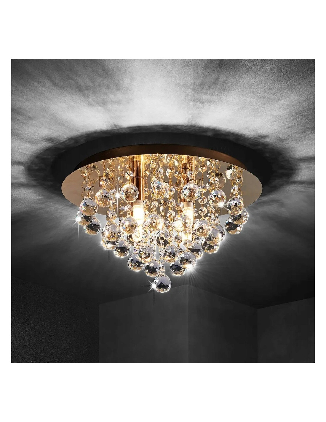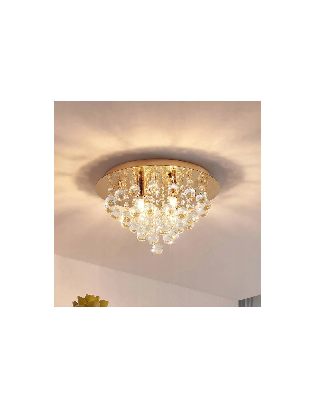 Wybierając ten plafon z kryształami, inwestujesz w nie tylko w nowoczesne oświetlenie, ale także w element dekoracyjny, który przekształci Twój salon w przestrzeń pełną elegancji. Jego piękny złoty kolor oraz połączenie z bezbarwnymi kryształami sprawiają, że lampa jest uniwersalna i doskonale dopasuje się do różnych stylów aranżacyjnych.