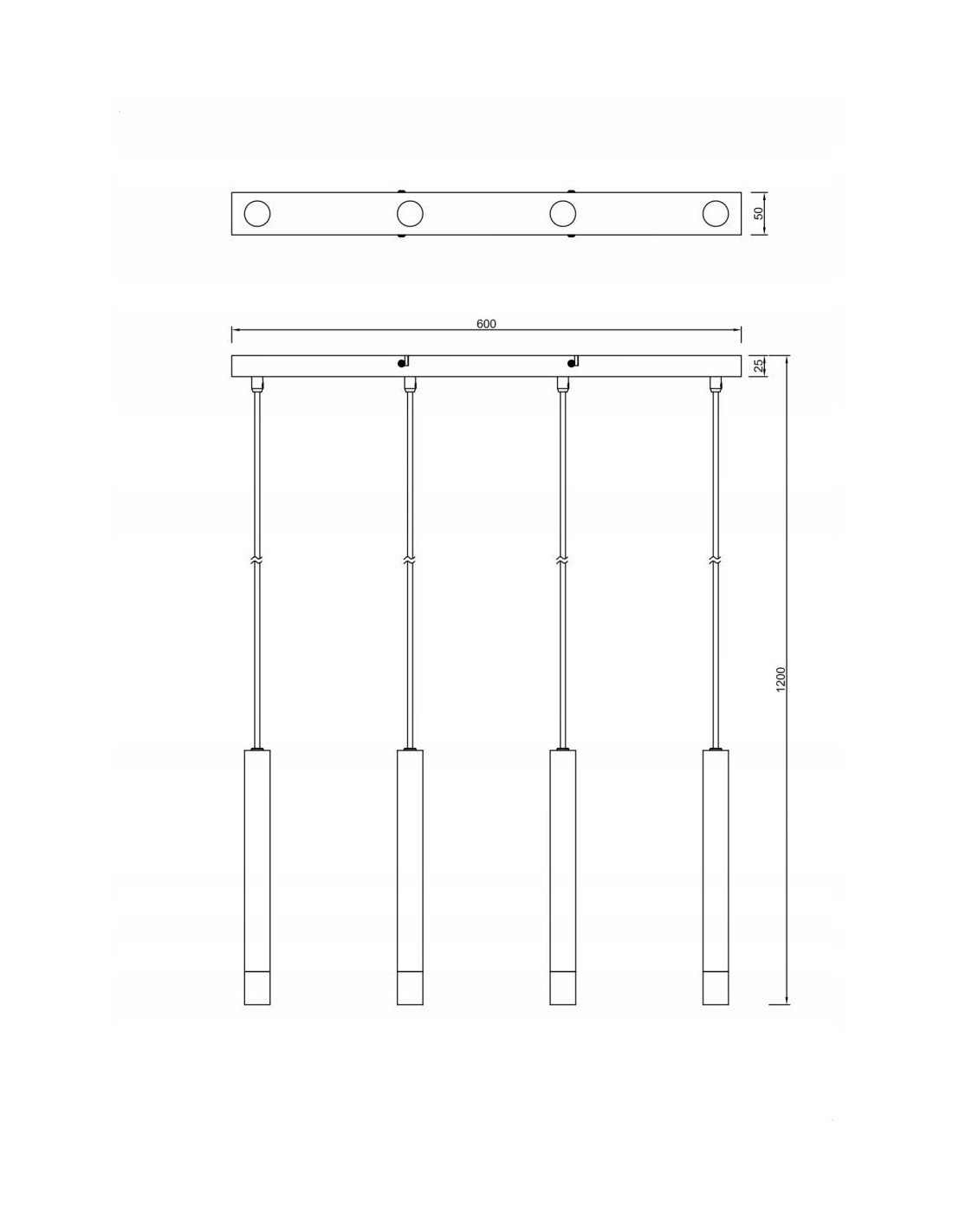 Produkt został wykonany z wysokiej jakości metalu, co gwarantuje trwałość i stabilność konstrukcji. Lampa ma długość 120 cm i szerokość 60 cm, jest wyposażona w 4 punkty świetlne na gwint G9 (źródła światła nie są dołączone). Maksymalna moc pojedynczego źródła to 5 W, zasilanie sieciowe 230 V, a klasa szczelności to IP20, co czyni ją odpowiednią do użytku wewnętrznego.