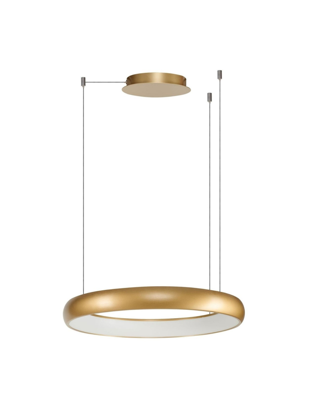 Żyrandol w kształcie pierścienia na pilot ANTONIO w kolorze złotym to doskonałe połączenie nowoczesności i elegancji, które idealnie komponuje się w różnych aranżacjach wnętrz. Ta unikalna lampa wisząca wyróżnia się nie tylko swoim estetycznym wyglądem, ale także funkcjonalnością. Dzięki możliwości sterowania pilotem, możemy łatwo dostosować oświetlenie do naszych potrzeb i nastroju w danym momencie.