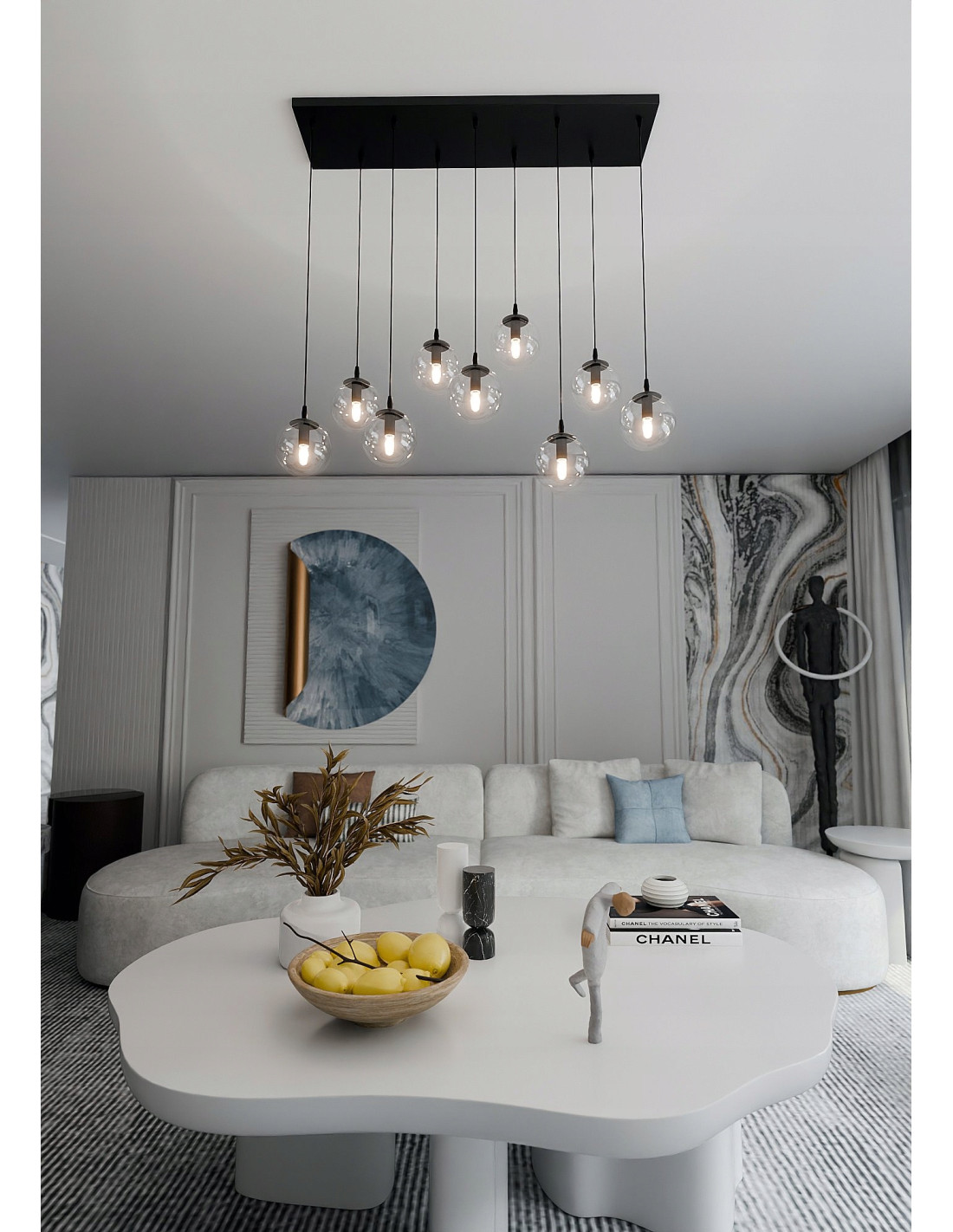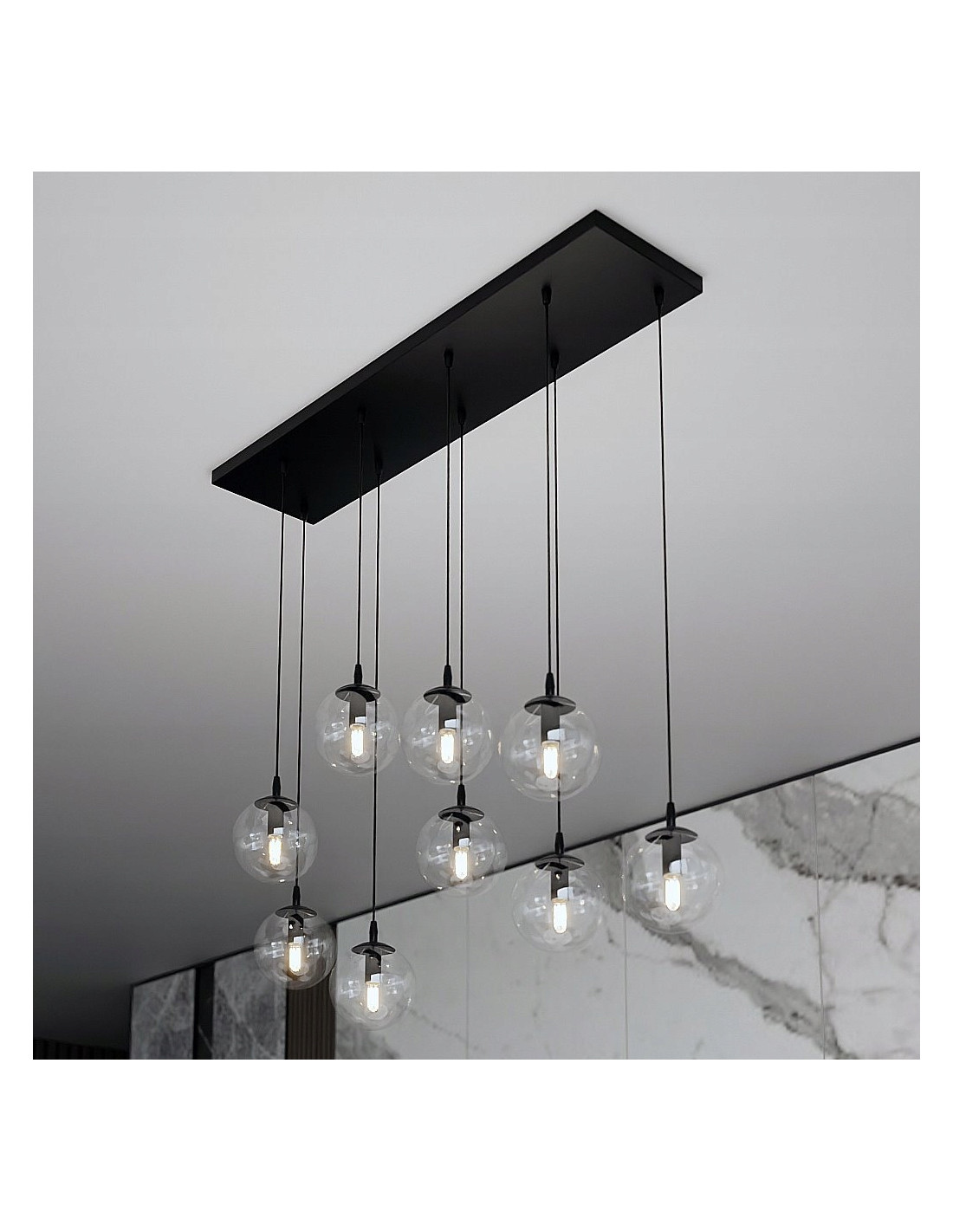 Żyrandol z rzędem wiszących szklanych kul z kolekcji COSMO to idealne połączenie elegancji i nowoczesności, które wprowadzi niepowtarzalny klimat do każdych wnętrz. Ten wyjątkowy produkt od renomowanej marki Emibig został zaprojektowany z myślą o osobach ceniących minimalistyczny styl oraz ponadczasową estetykę. Jego unikalny design sprawia, że doskonale sprawdzi się zarówno w sypialni, jak i w holu.
