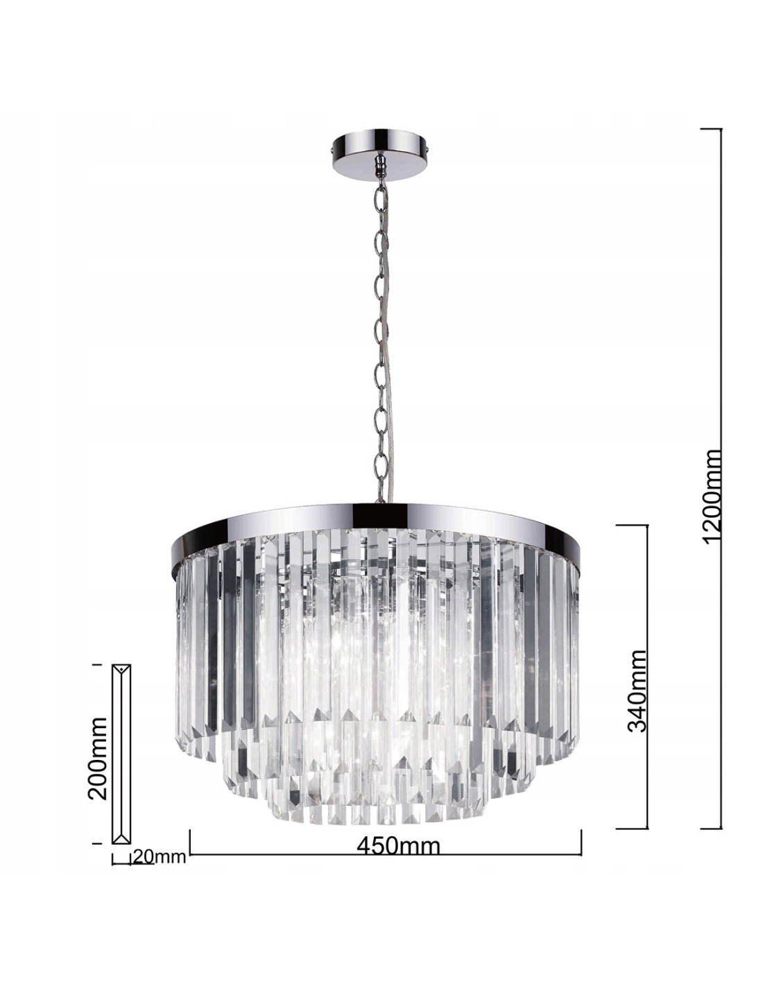 Jego metalowa konstrukcja w chromowanym odcieniu doskonale współgra z transparentnym szkłem, tworząc harmonijną całość. Z wysokością regulowaną od 40 do 100 cm oraz średnicą klosza wynoszącą 45 cm, żyrandol ten można dostosować do różnych potrzeb aranżacyjnych. Niezależnie od tego, czy ozdabia biuro, jadalnię czy sypialnię, jego obecność z pewnością przyciągnie wzrok i zainspiruje do dalszej dekoracji.
