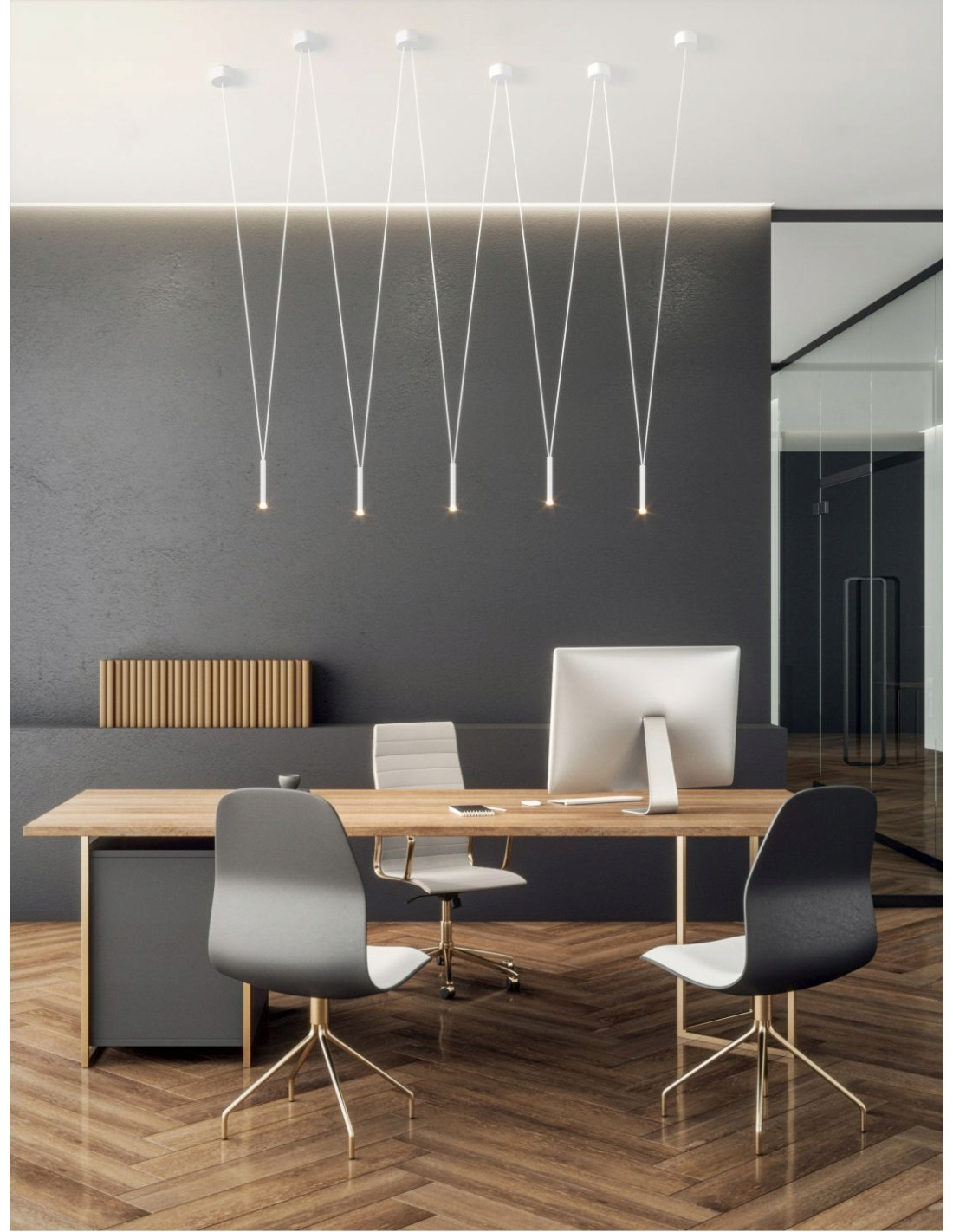 Oświetlenie Viva V Bianco to nowoczesny żyrandol, który doskonale wpisuje się w trendy wzornictwa loftowego i minimalistycznego. Jego unikalna forma oraz białe, matowe wykończenie nadają elegancji każdemu wnętrzu, czyniąc z niego idealny element dekoracyjny do przestrzeni takich jak biura, jadalnie czy salony. Żyrandol stworzony został z wysokiej jakości metalu i aluminium, co zapewnia mu trwałość oraz odporność na uszkodzenia.