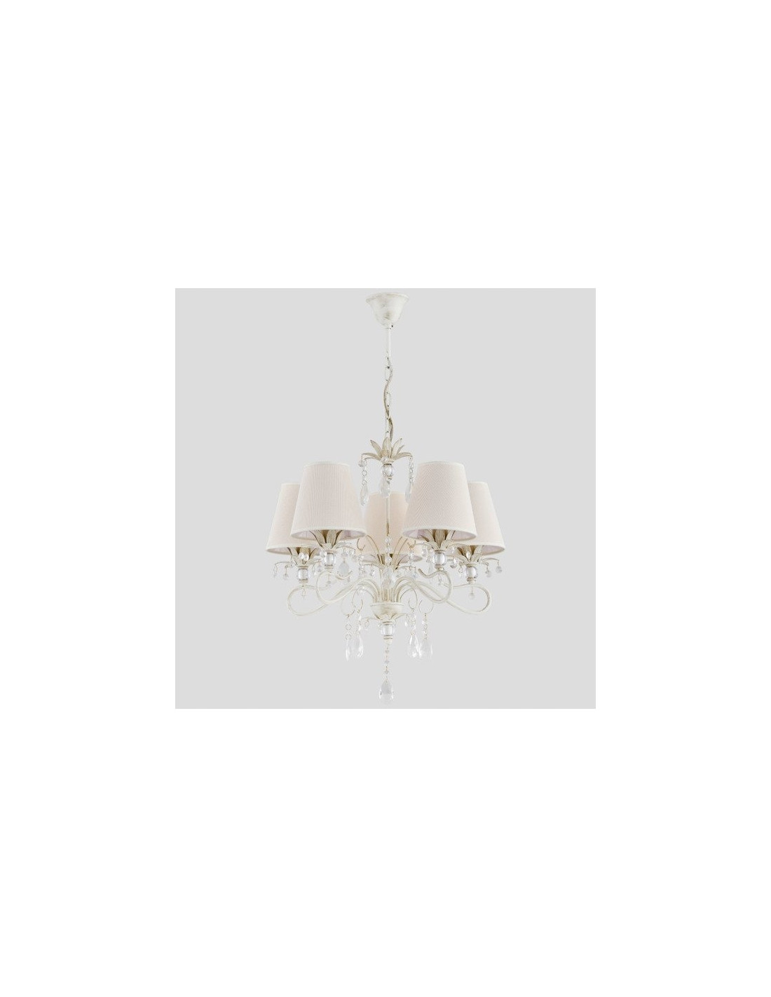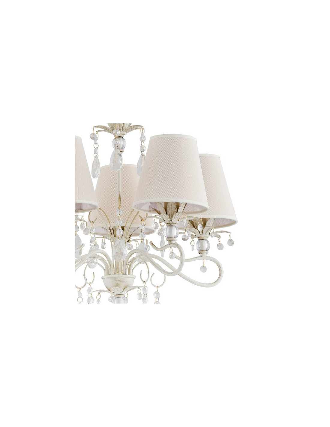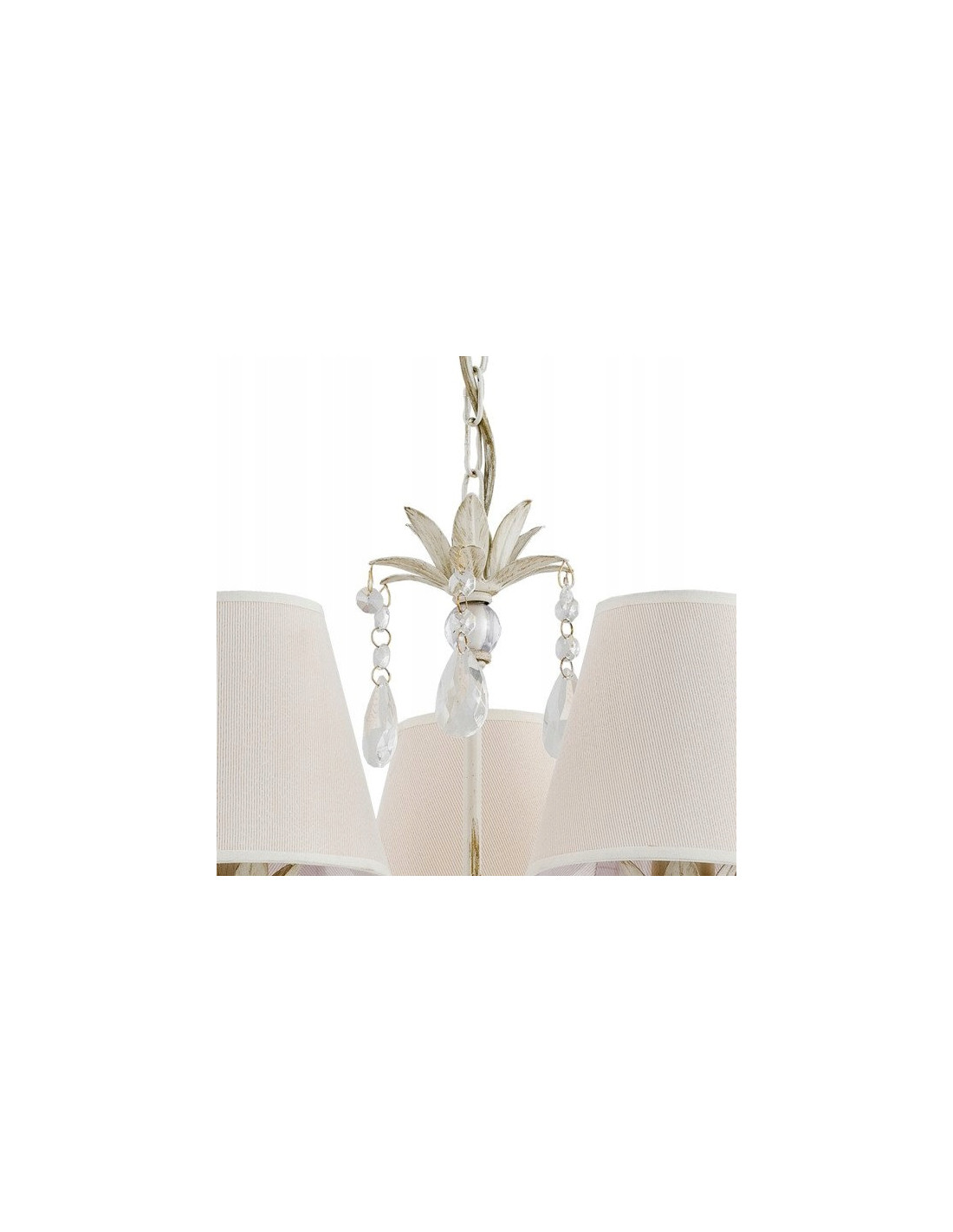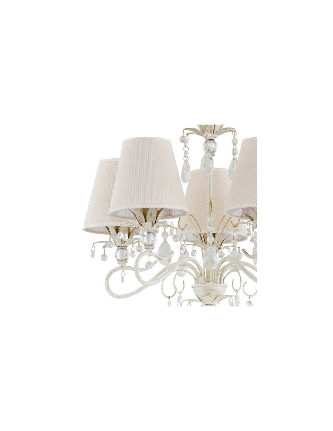 Żyrandol LUKRECJA BIAŁA to elegancka i stylowa lampa, która doskonale wpisuje się w klimat zarówno nowoczesnych, jak i klasycznych wnętrz. Dzięki swojemu antycznemu białemu stelażowi oraz stożkowatym abażurom, stanowi efektowny element dekoracyjny, który ożywi każde pomieszczenie. Idealnie nadaje się do jadalni, salonów, biur, a także kuchni czy sypialni.