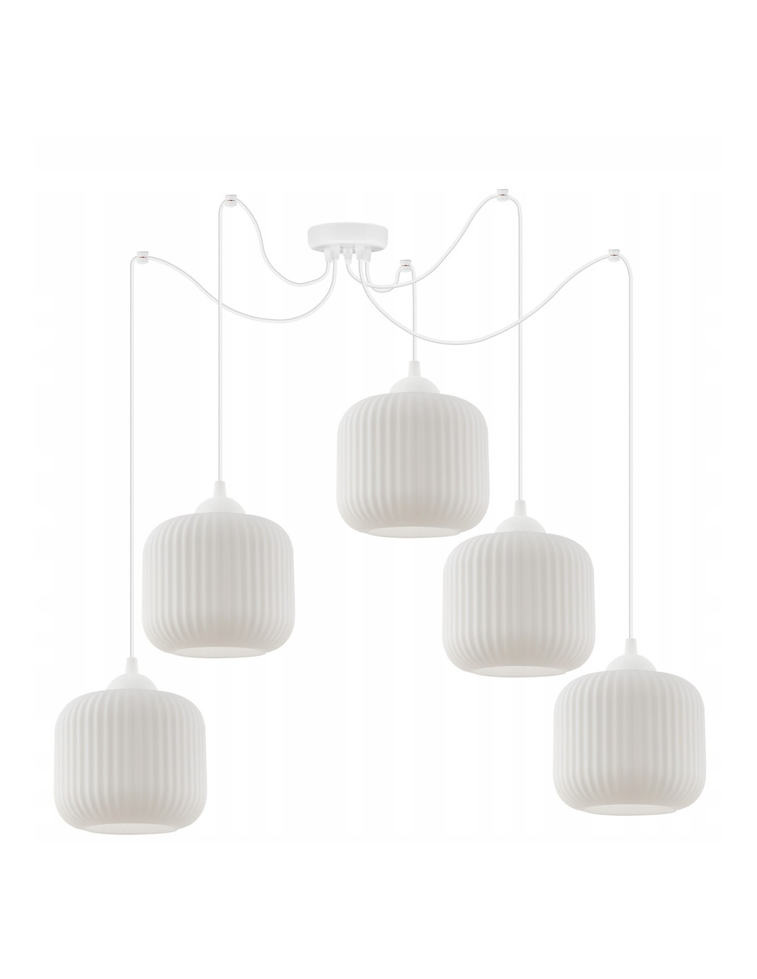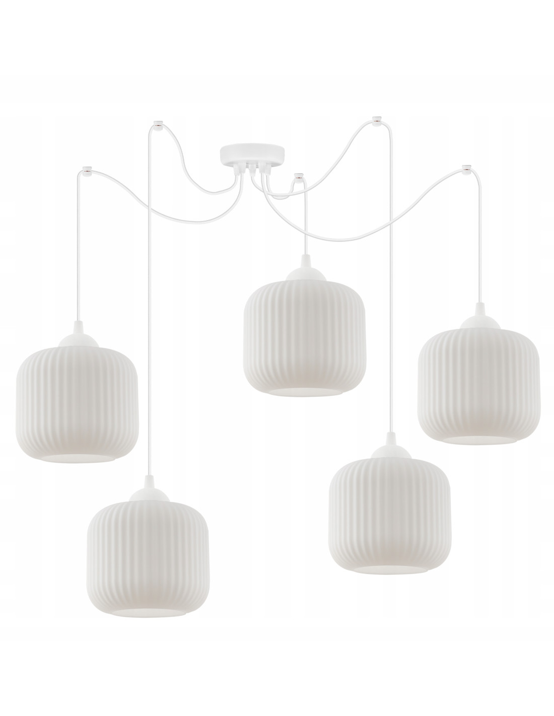 Odkryj nowy wymiar elegancji z estetycznym rozłożystym żyrandolem RIFFLE, który doskonale wpasuje się w różnorodne aranżacje wnętrz. Jego nowoczesna konstrukcja w kształcie walca, ozdobiona białymi, szklanymi kloszami, sprawia, że stanowi on nie tylko źródło światła, ale również wyjątkowy element dekoracyjny. Idealny do przestrzeni w stylu skandynawskim bądź nowoczesnym, ten żyrandol doda Twojemu wnętrzu przytulności oraz elegancji.