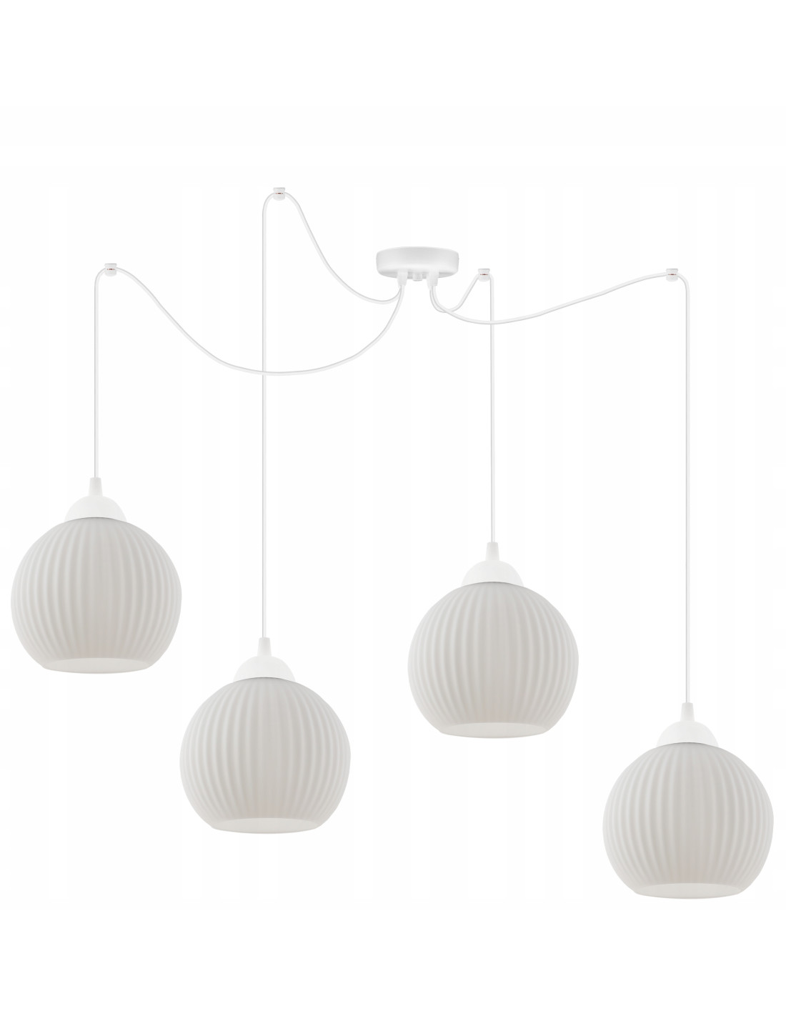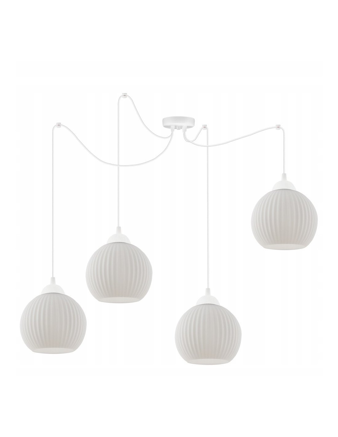 Wprowadź do swojego wnętrza odrobinę elegancji z delikatnym żyrandolem RIFFLE, cztero-ramiennym pająkiem, który zachwyca swoją minimalistyczną formą i estetyką. Dzięki wyjątkowym białym kulom ze szkła, lampa idealnie wkomponuje się w wnętrza w stylu skandynawskim lub nowoczesnym, tworząc przytulną atmosferę w pomieszczeniach, takich jak sypialnia, salon czy jadalnia.