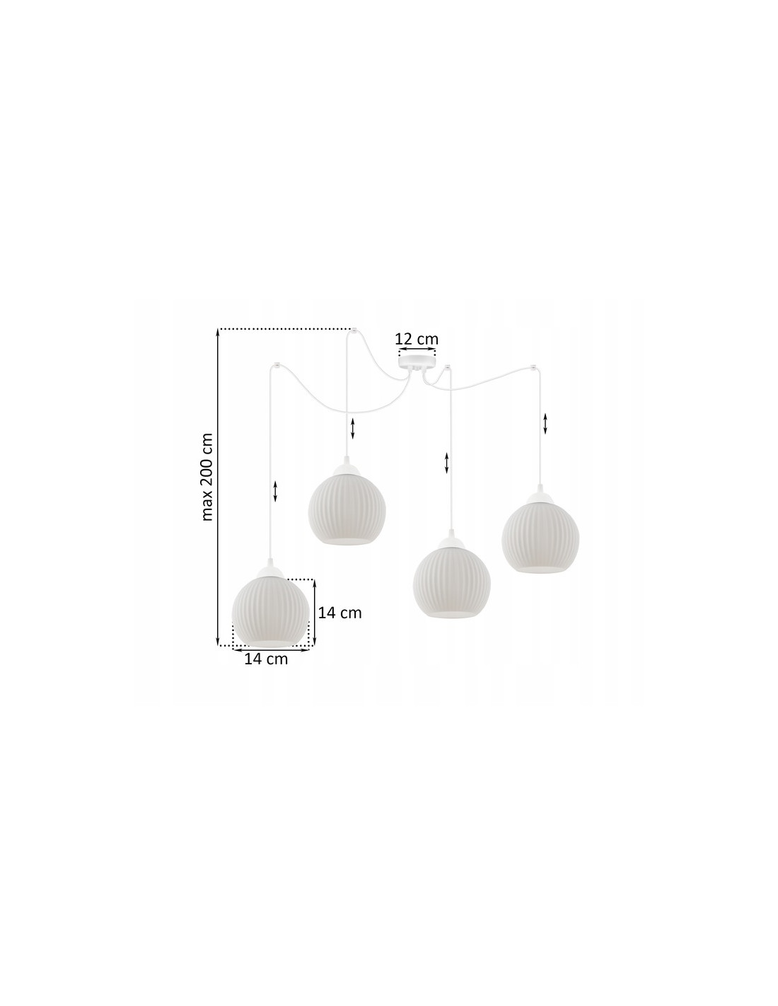 Żyrandol ma regulowaną długość wynoszącą 200 cm, co sprawia, że jest to doskonałe rozwiązanie do centralnego oświetlenia pomieszczeń. Możesz go swobodnie dostosować do różnych przestrzeni, zarówno nad stołem w jadalni, jak i wyspą kuchenną, a także nad kanapą w salonie. Dzięki temu oswietlenie będzie nie tylko funkcjonalne, ale też estetyczne.