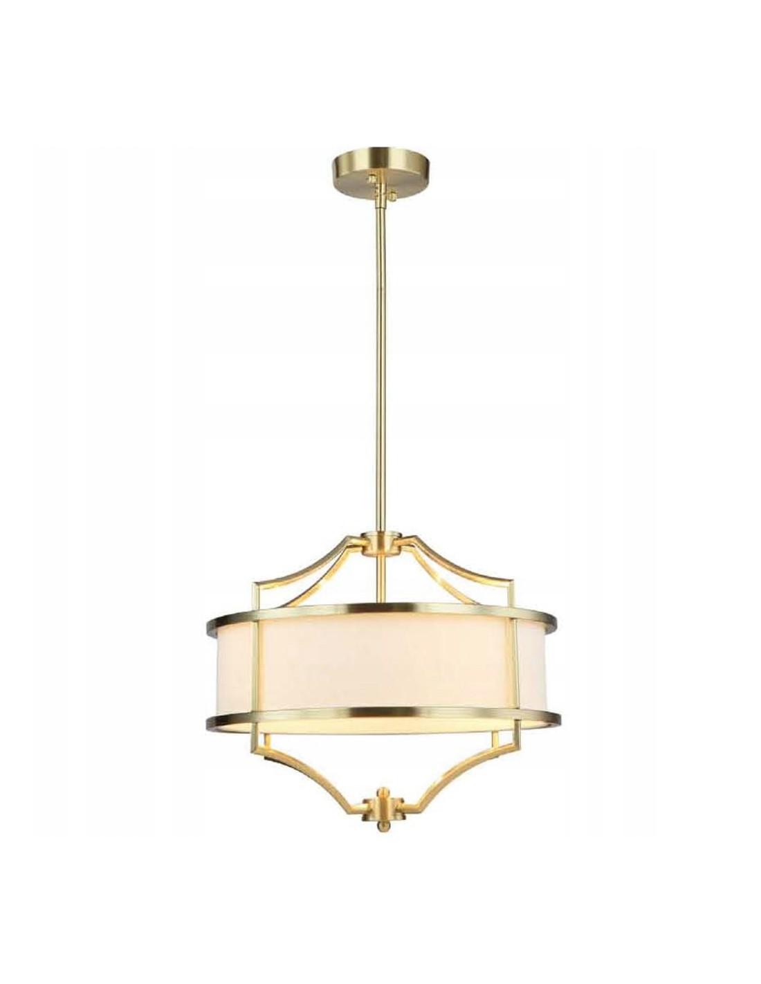 Wymiary lampy są perfekcyjnie dopasowane do różnych przestrzeni. Wysokość całkowita wynosi 130,6 cm, a średnica klosza to 42 cm. Taka konstrukcja sprawia, że żyrandol Stesso Old Gold S idealnie uzupełnia zarówno wysokie, jak i niskie sufity. Dzięki możliwości montażu czterech źródeł światła (gwint E27), zapewnia on możliwość regulacji intensywności oświetlenia według własnych potrzeb.